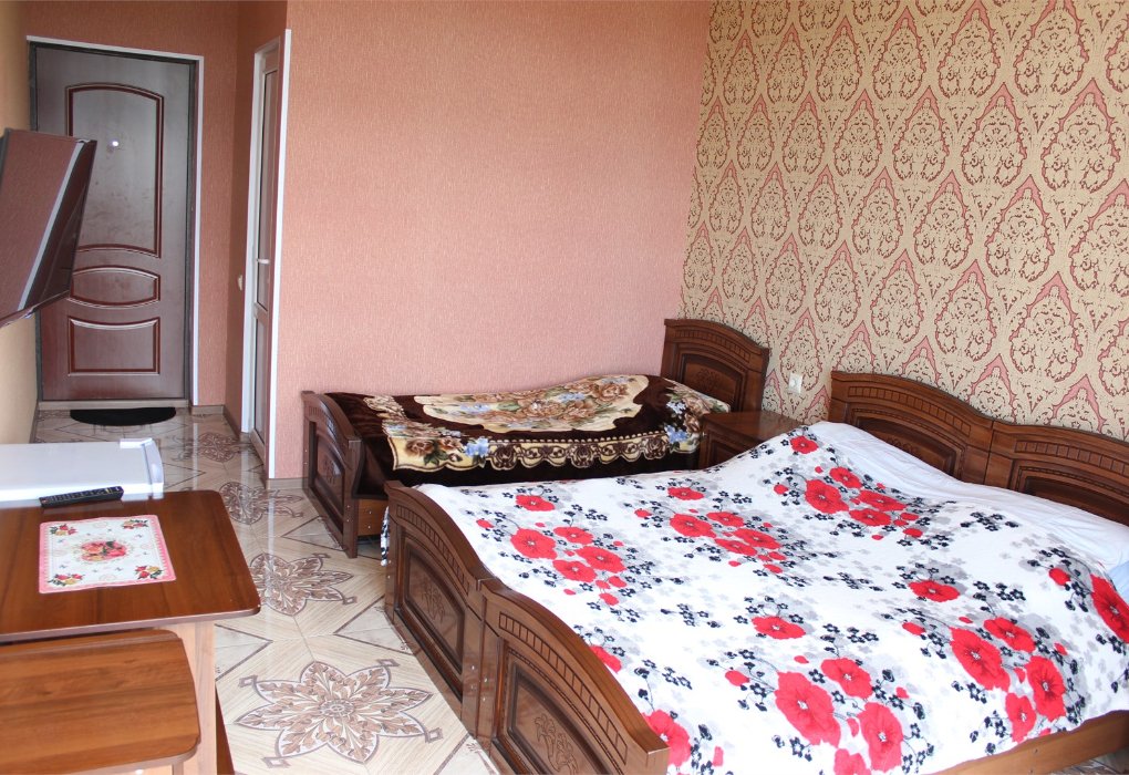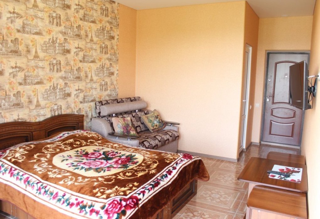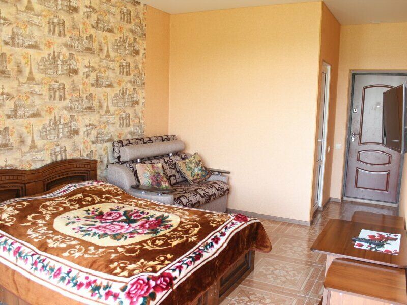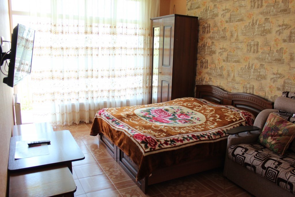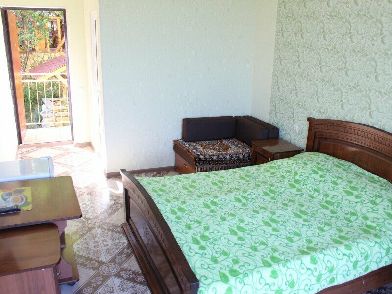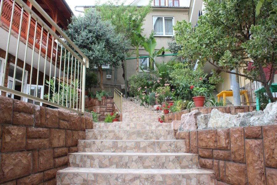 Номера делюкс в новом корпусе (расположен в 150 метрах от основной территории), максимум комфорта и удобств. Новый ремонт, современная техника, балкон с потрясающим панорамным видом на море. На территории нового корпуса также имеется детская площадка, общая кухня, летняя беседка, скамейки и много зелени.Услуги и удобства