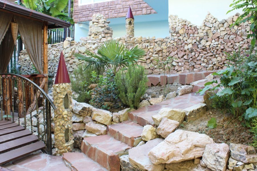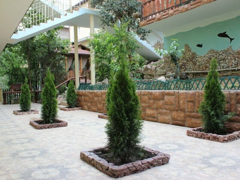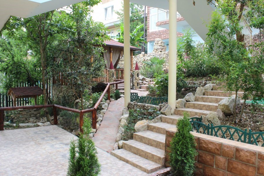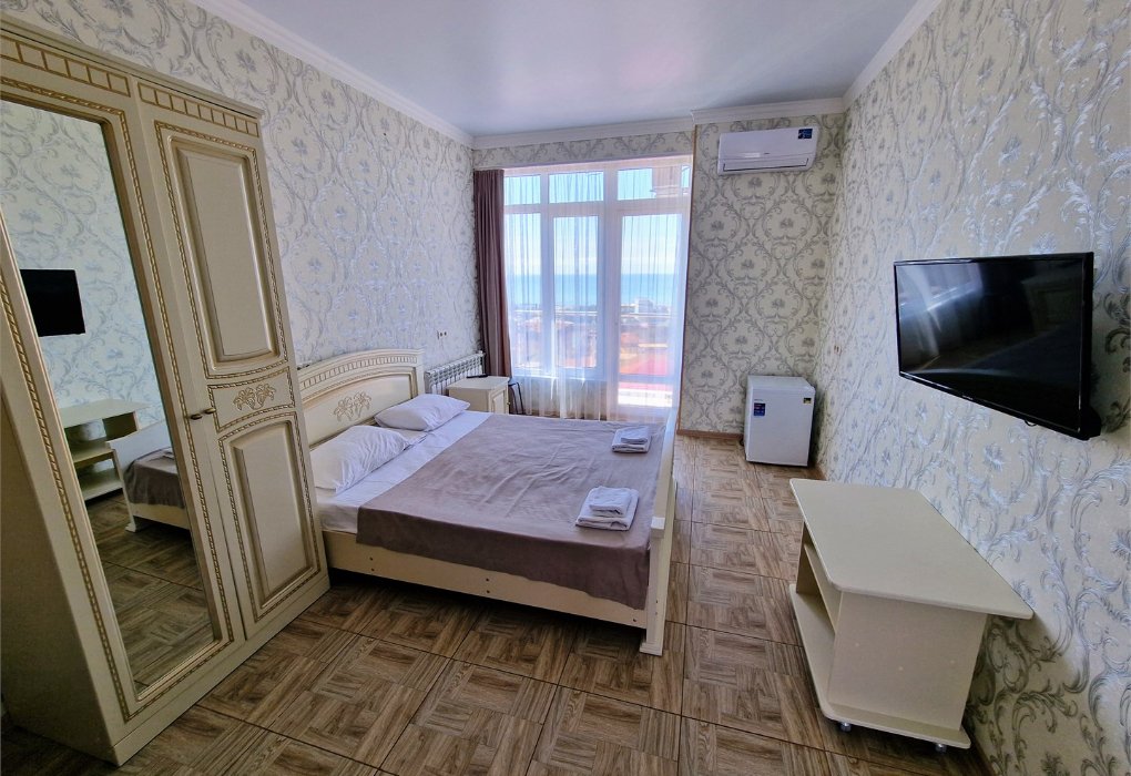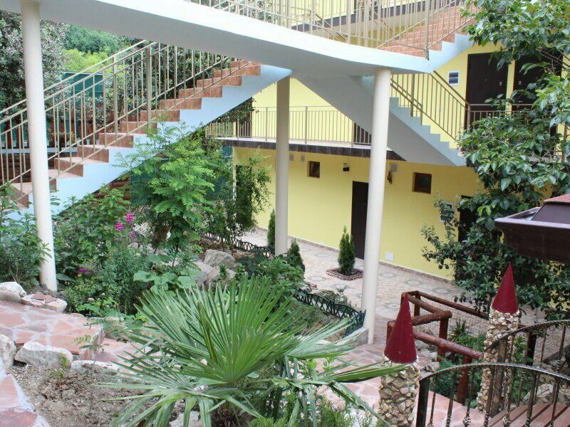 Комплекс занимает благоустроенную территорию с небольшим закрытым внутренним двориком. Гостевой дом включает два трехэтажных спальных корпуса (без лифта). Гостей ожидают номера категории Стандарт и Улучшенный, рассчитанные на 2—4 гостей. В каждом номере есть собственный санузел, сплит-система, телевизор и открытые балконы-террасы, с которых открываются живописные панорамы моря или Кавказских гор.