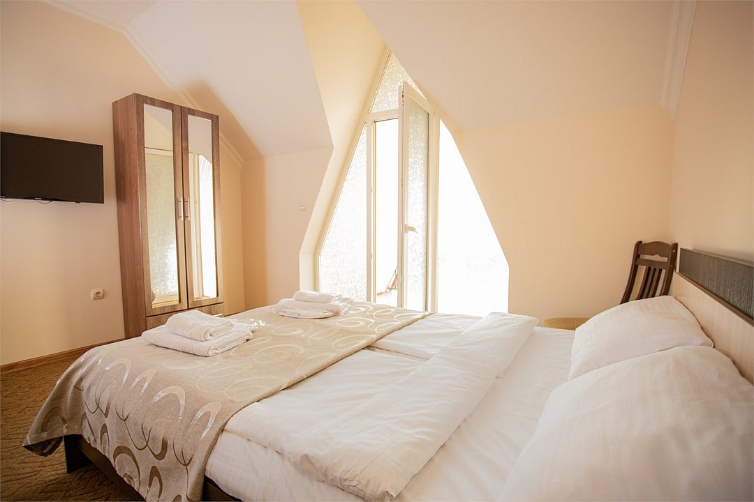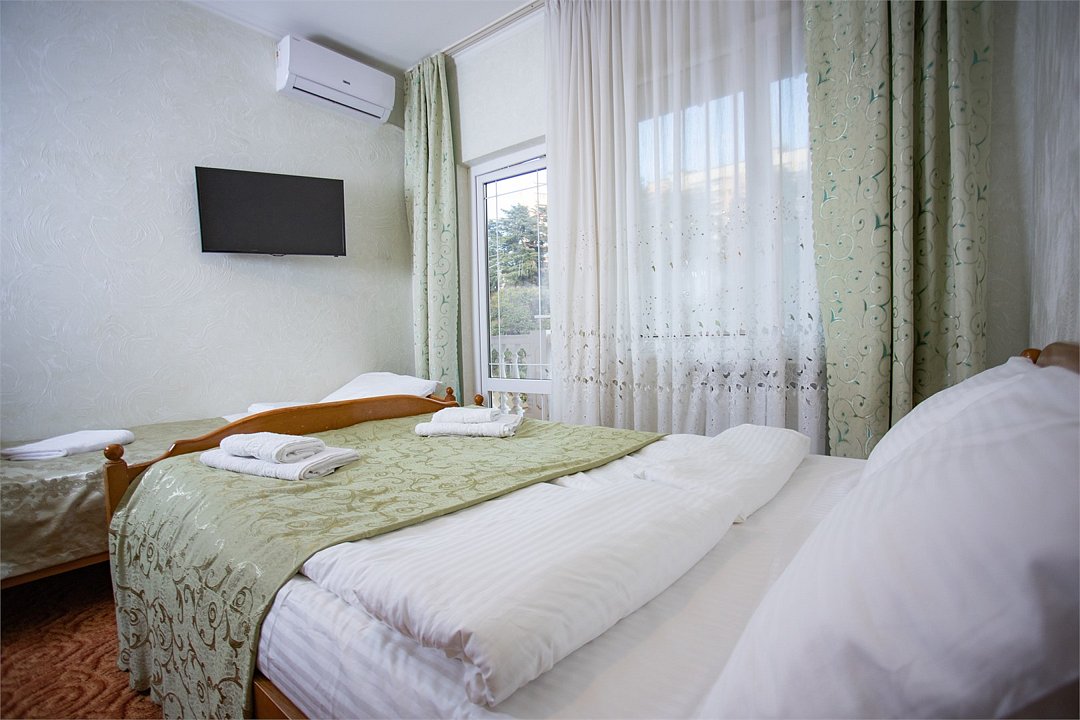 Здесь предлагает по-домашнему уютные номера. Каждый из них оснащен мебелью, комфортным спальным местом, телевизором, кондиционером и ванной комнатой.