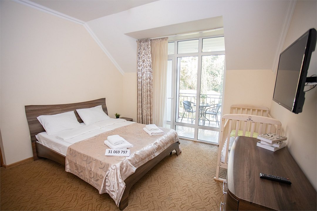 Двухкомнатный семейный номер с балконом. Можно поставить допместо за допплату. Есть общая кухня во двореУслуги и удобства