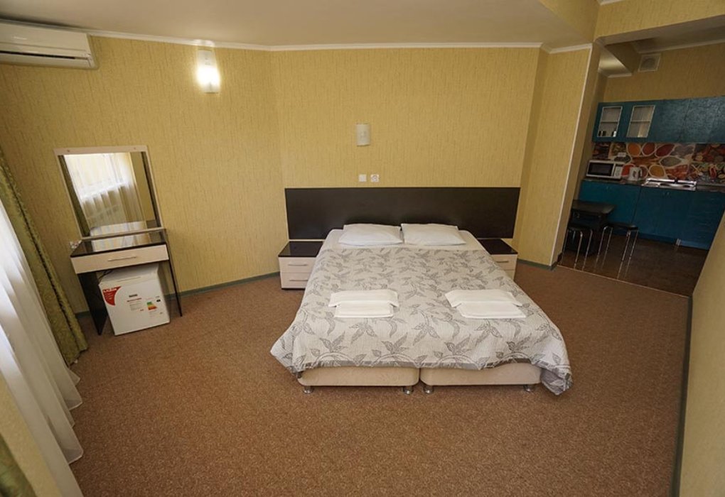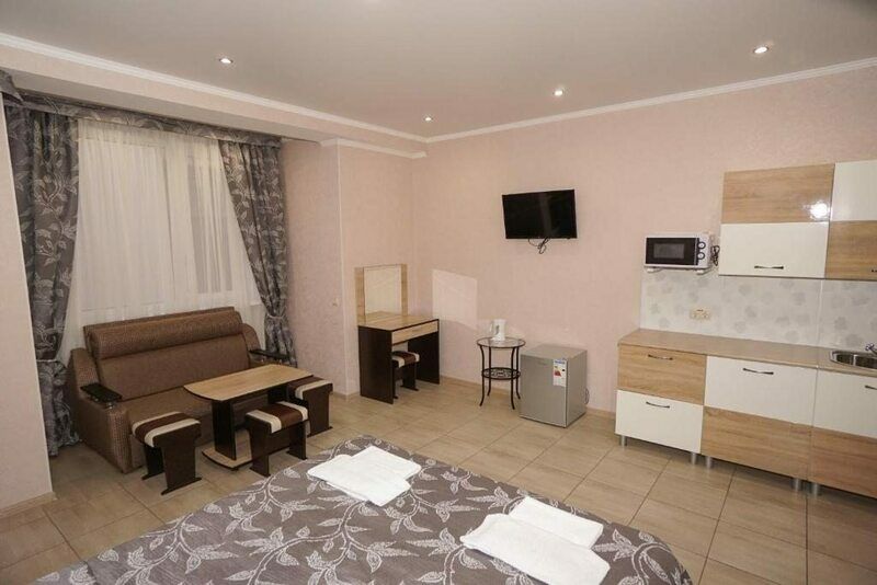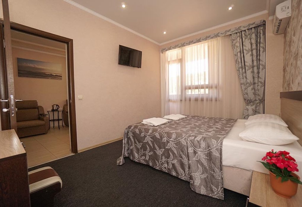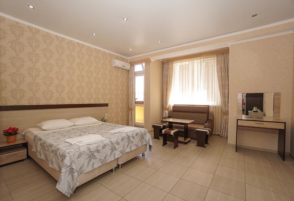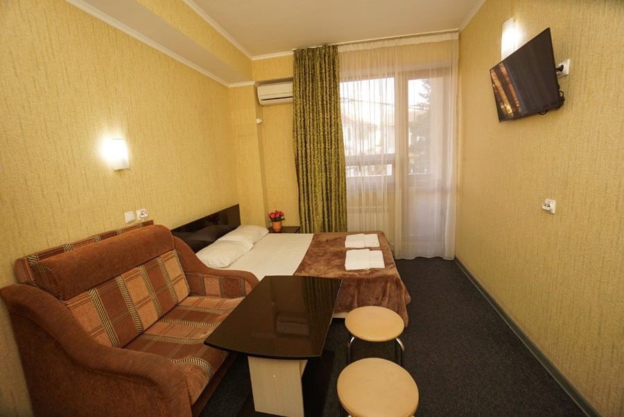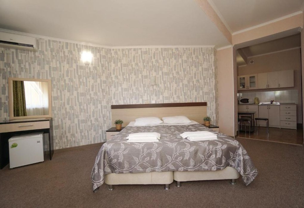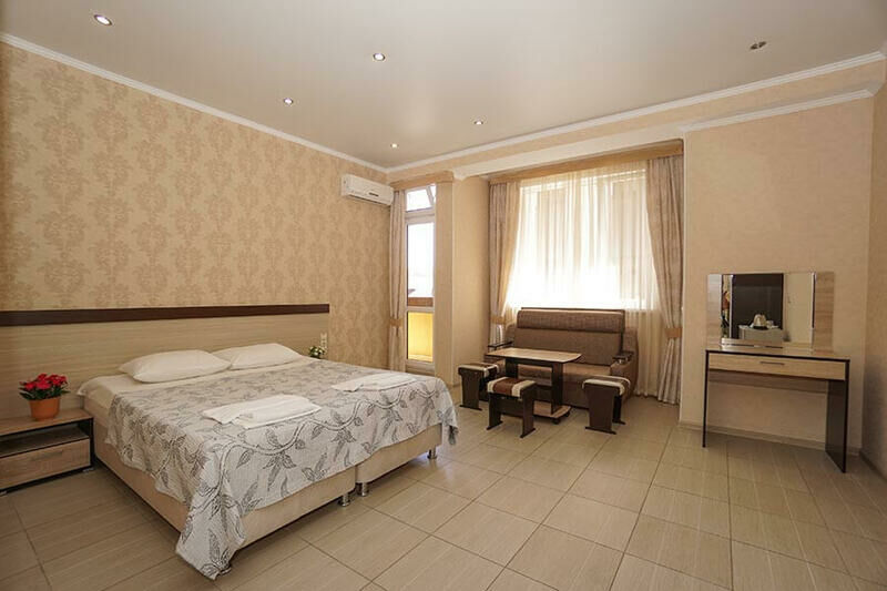 Комфортабельные номера, в светлых тонах, оборудованы необходимой техникой и собственной ванной комнатой. Размещение подойдёт для всей семьи. С балконов открывается вид на побережье и город.