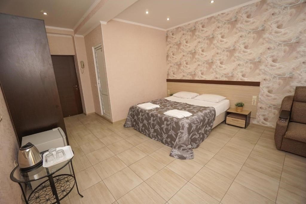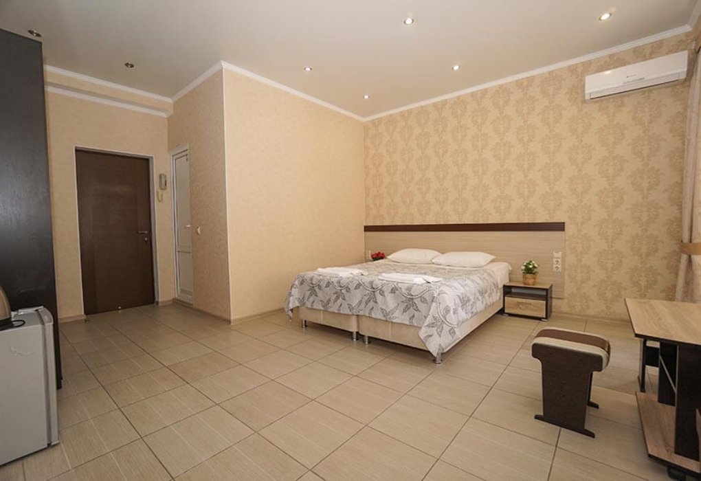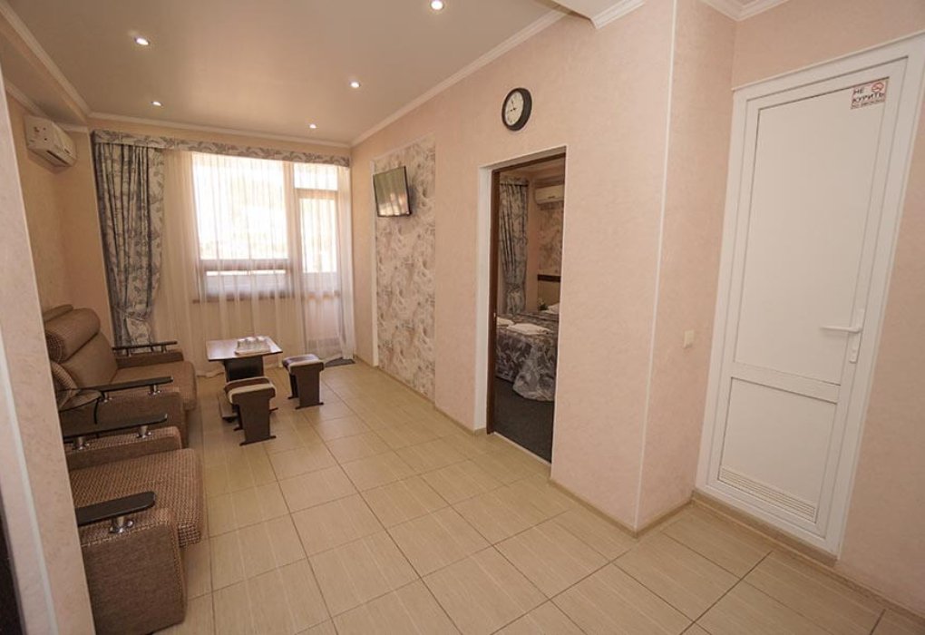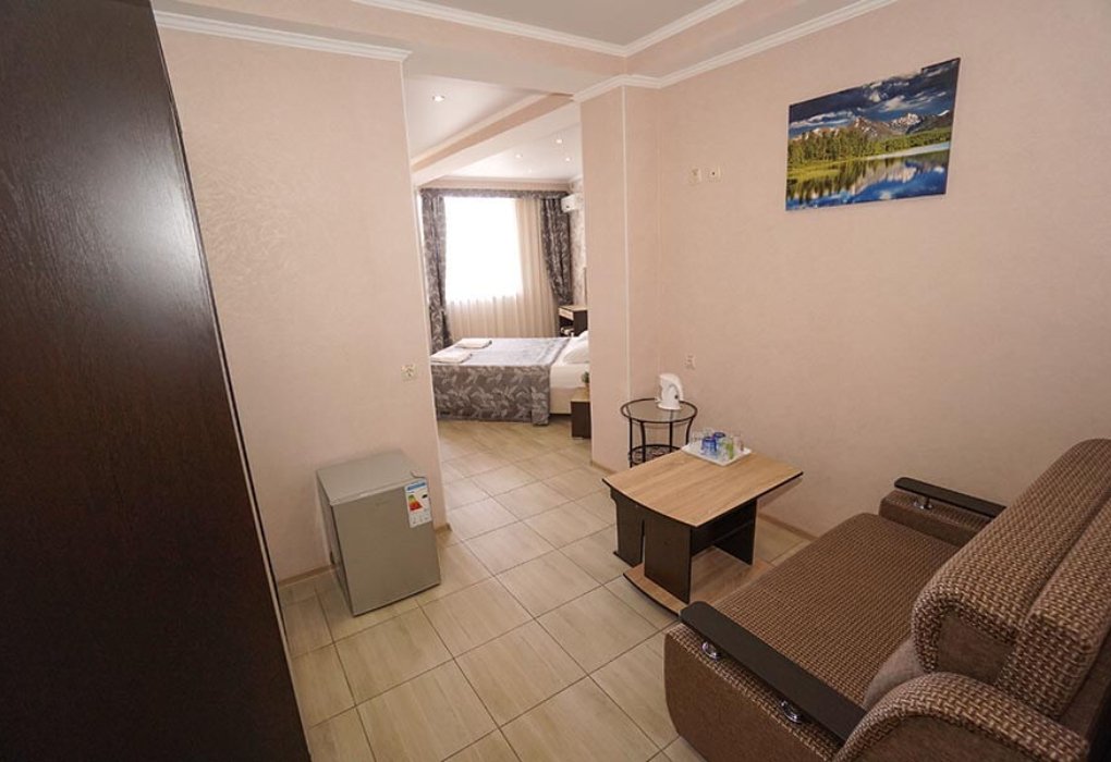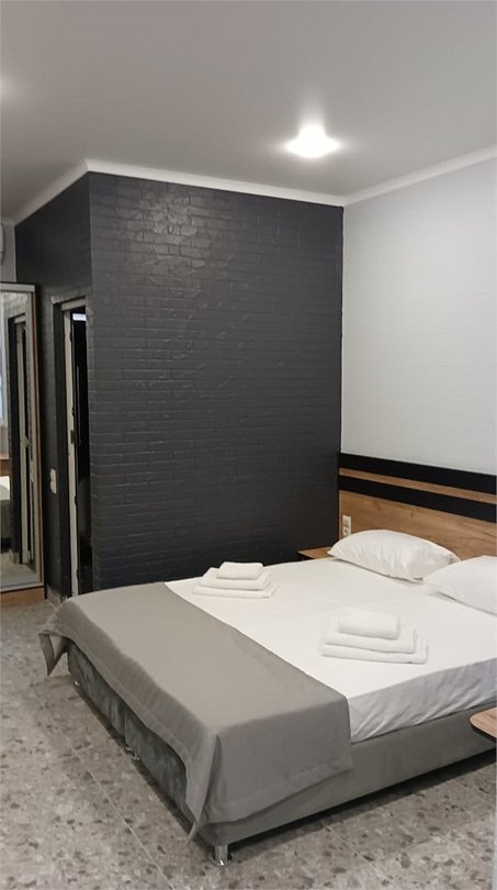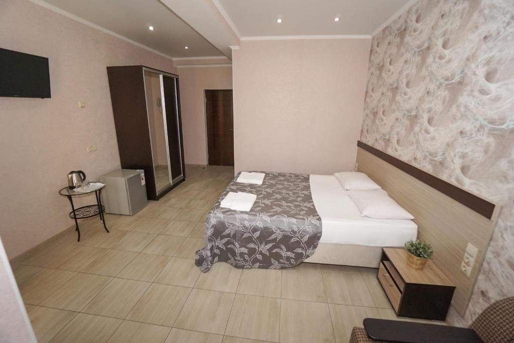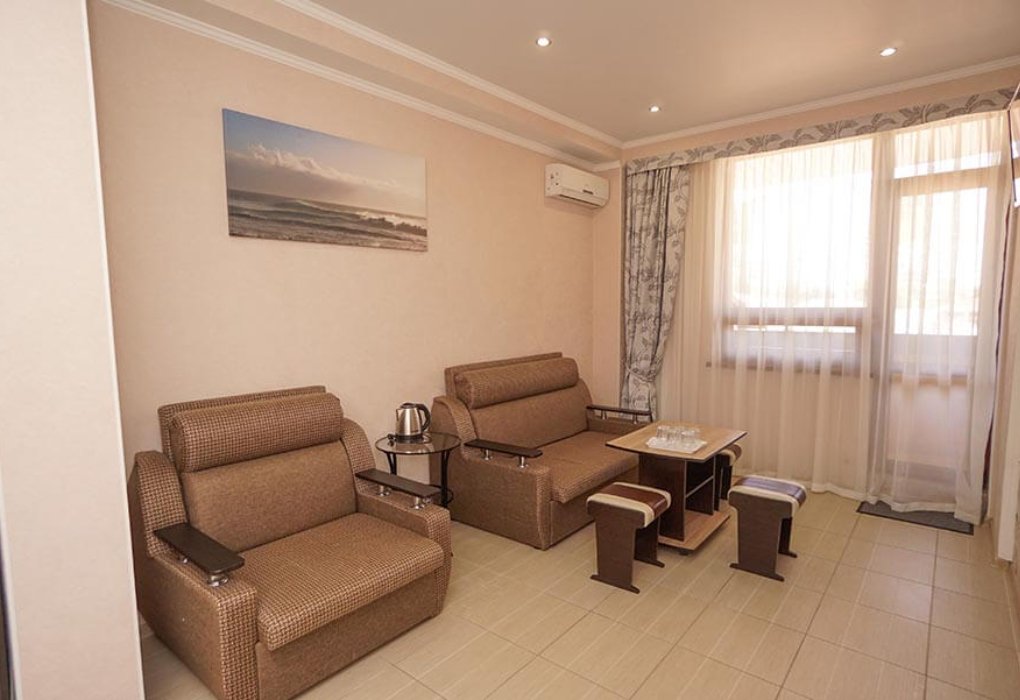 Комфортабельные номера, в светлых тонах, оборудованы необходимой техникой и собственной ванной комнатой. Размещение подойдёт для всей семьи. С балконов открывается вид на побережье и город.