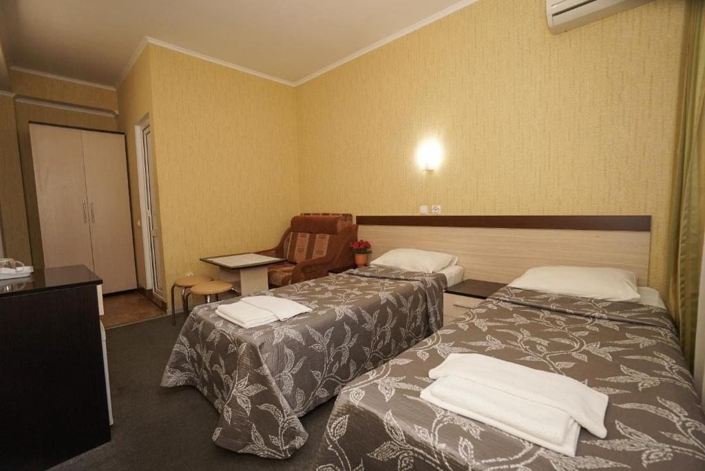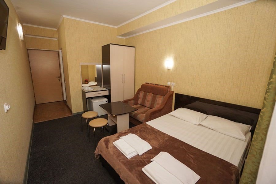 Wi-Fi, душевая кабина, санузел, банные полотенца, две односпальные или большая двуспальная кровать, зеркало, унитаз, вид во двор, стул, тумба, туалетный столик, сплит-система, телевизор с плоским экраном, мини-холодильник, шкаф-купе, вид на бассейн, кресло-кровать, вешалки-плечики, без питомцевВ гостиничном номере
