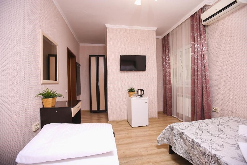 Wi-Fi, фен, душевая кабина, банные полотенца, тапочки, гигиенические средства, балкон, две односпальные или большая двуспальная кровать, шкаф для одежды, вешалки, журнальный столик, зеркало, чайник, унитаз, раковина, отопление, плиточное покрытие, стаканы, стул, тумба, туалетный столик, туалетные средства, туалет, сплит-система, сушилка для белья, диван-кровать, раскладной диван, телевизор с плоским экраном, мини-холодильник, москитная сетка, номер для некурящих, без питомцевВ гостиничном номере