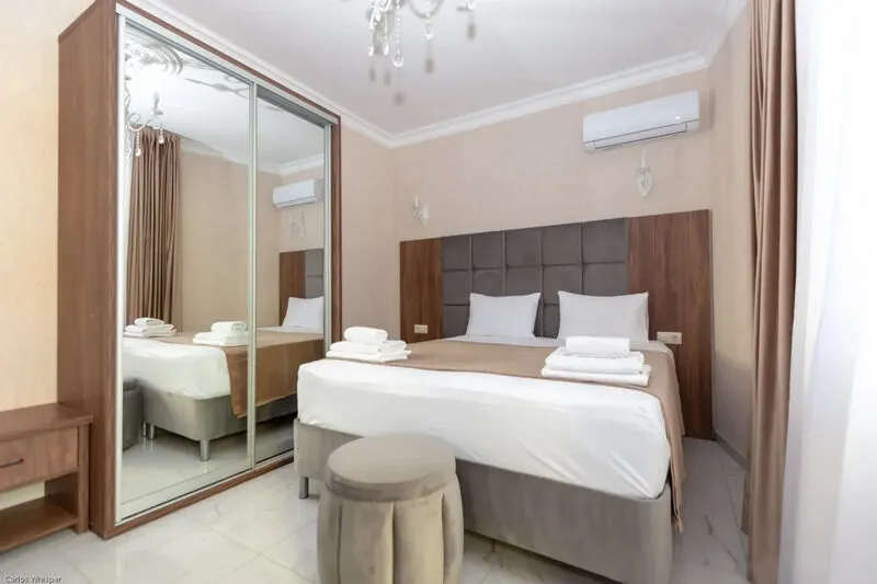 2-спальная кровать или две 1-спальные кровати, диван раскладной, с/у с душем, ТВ, сплит-система, холодильник