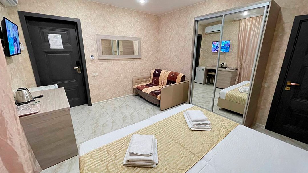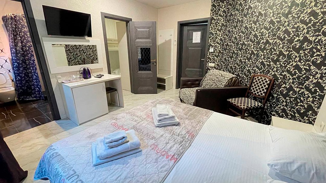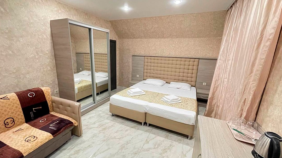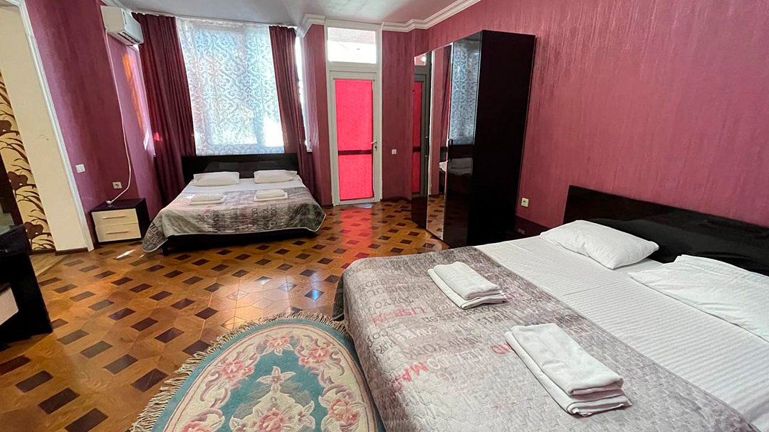 Самолетом до аэропорта Адлер, далее автобусом№535,557 в направлении «Вокзал Олимпийский парк» до остановки «Торговый Центр Новый век», далее пройти 269 м до гостевого дома.