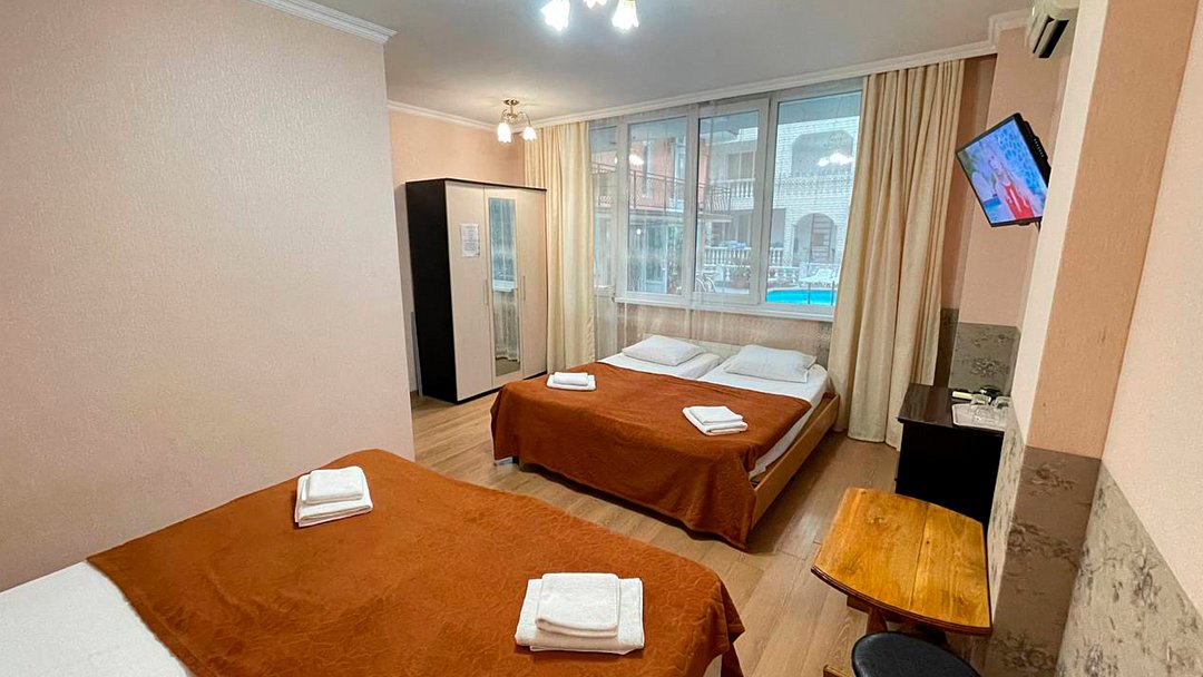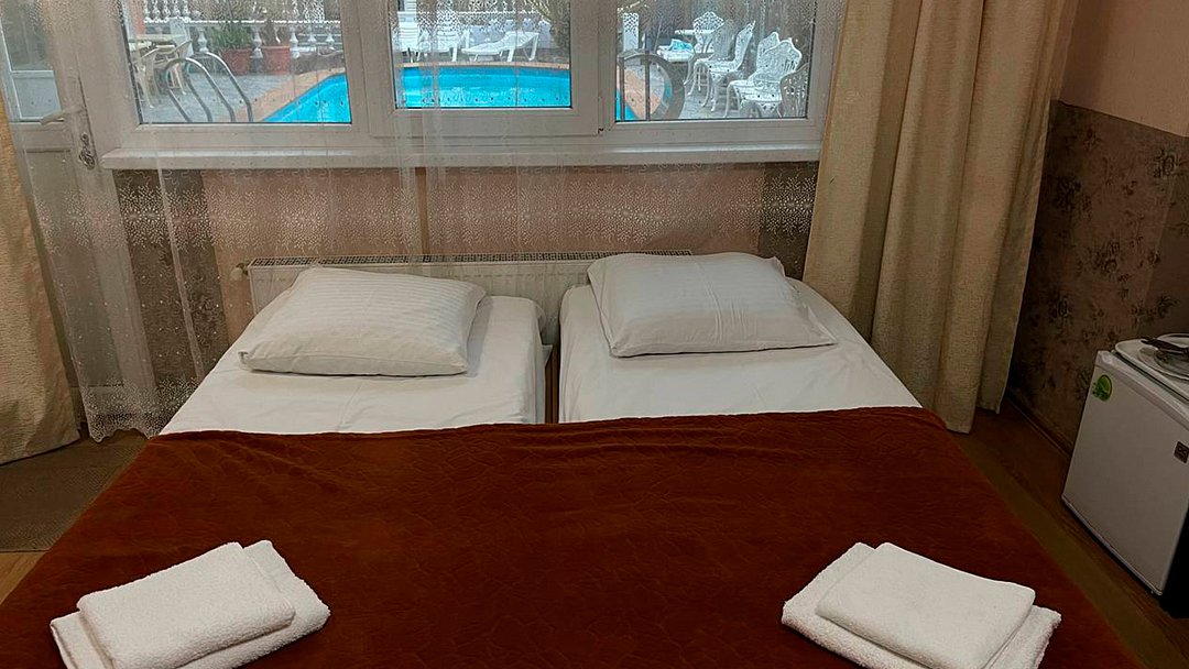 Питание предоставляется в зависимости от выбранного пакета: проживание, завтрак, завтрак + ужин. Так же на территории расположен открытый подогреваемый бассейн с шезлонгами.