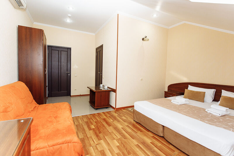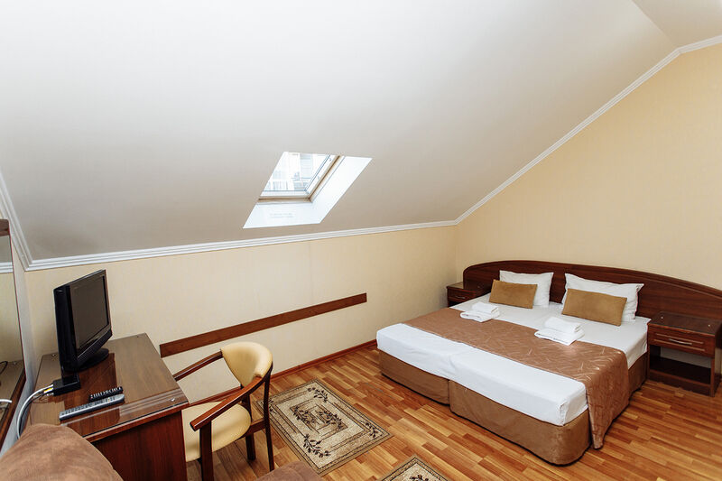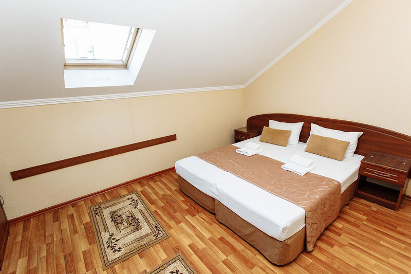 Пятиэтажный корпус, оснащенный лифтом, включает в себя просторные номера Стандарт и Комфорт. Интерьеры всех номеров выдержаны в спокойной светлой цветовой гамме. В каждой комнате имеется собственный санузел с душевой кабиной или ванной, кондиционер и мини-холодильник.