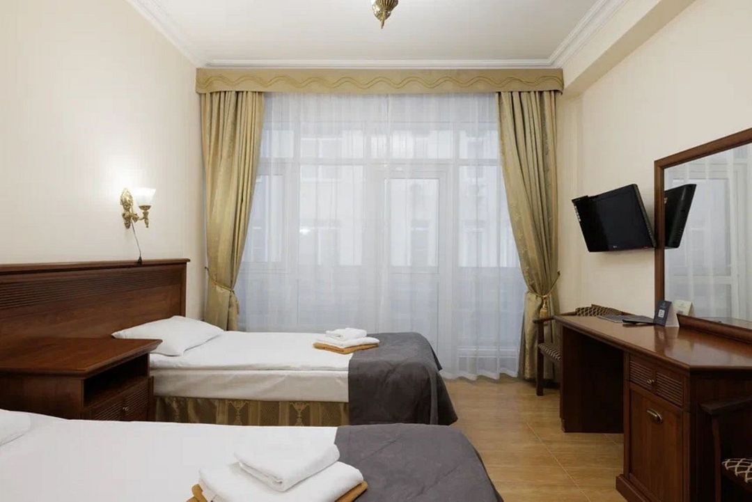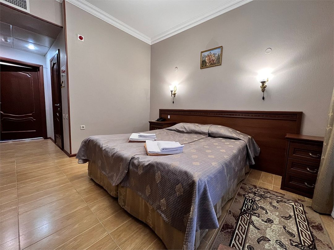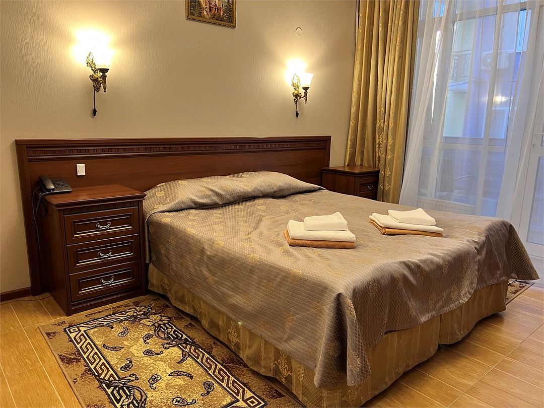 Двухместный, однокомнатный номер с балконом, одна двуспальная кровать или 2 односпальные кровати с прикроватными тумбочками, шкаф, журнальный столик, туалетный столик, телевизор, холодильник. Ванная комната с комфортабельной душевой кабиной, фен.Услуги и удобства