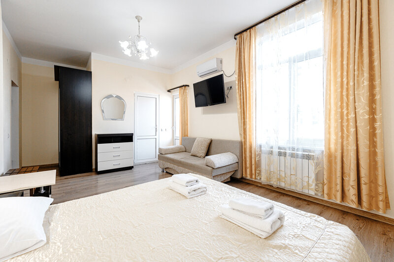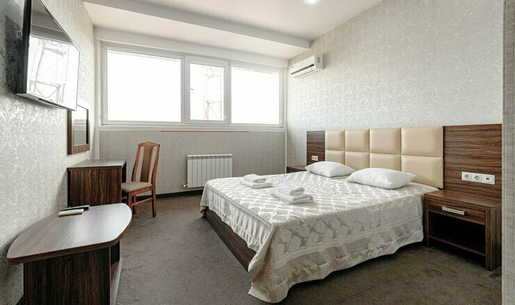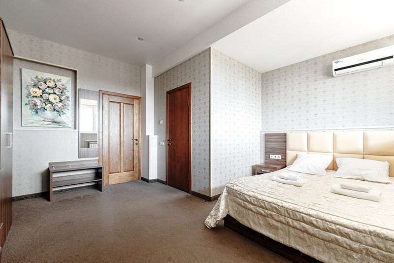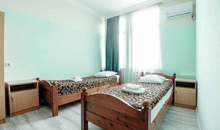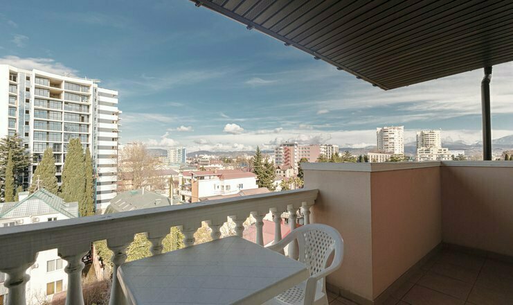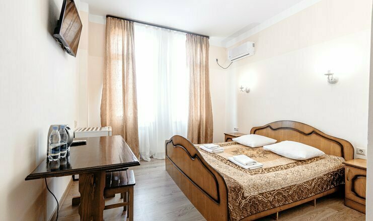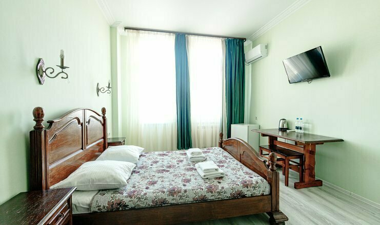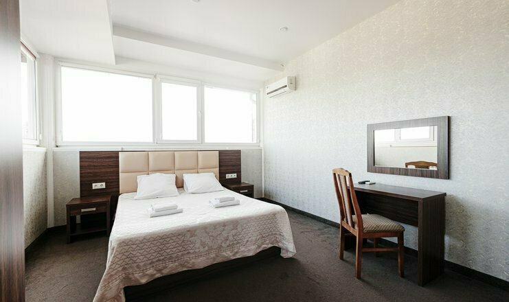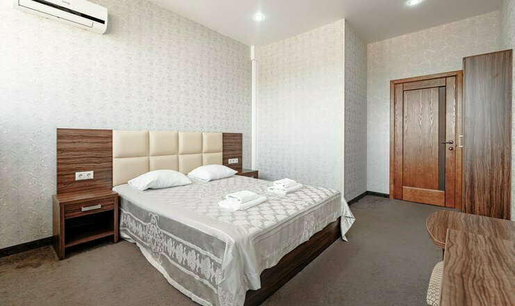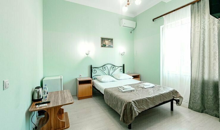 Отель соответствует современным стандартам туристической индустрии. К услугам гостей 39 номеров различной категории, круглосуточное и круглогодичное размещение, бесплатный Wi-Fi, прачечная, кафе на территории, видеонаблюдение, лифт. Номера оформлены в классическом стиле. В каждом номере ЖК-телевизор, холодильник, кондиционер, сан.узел, есть номера с видом на море и горы.