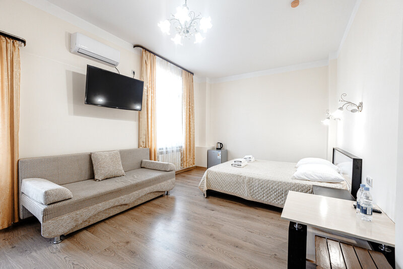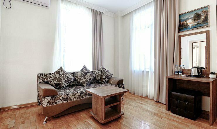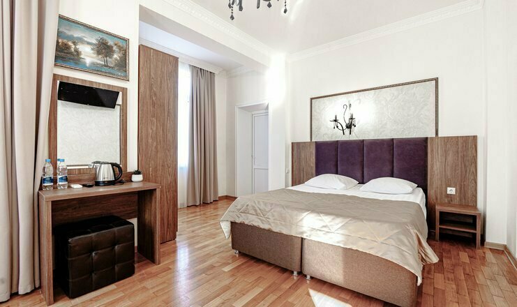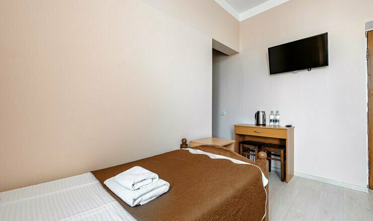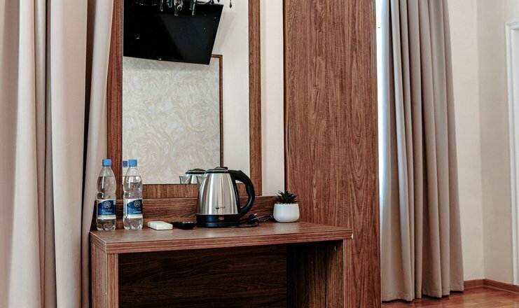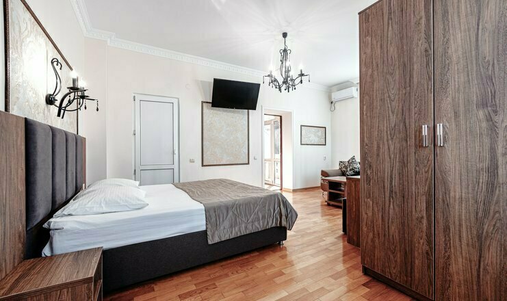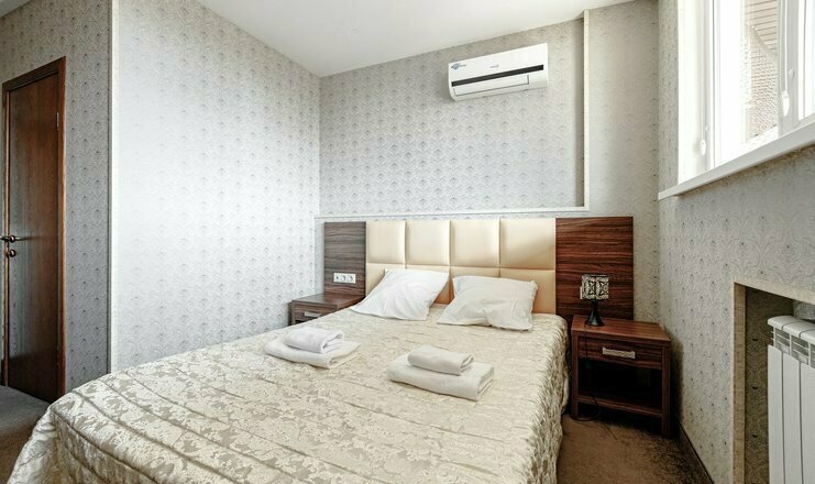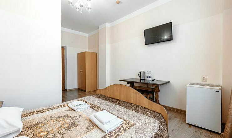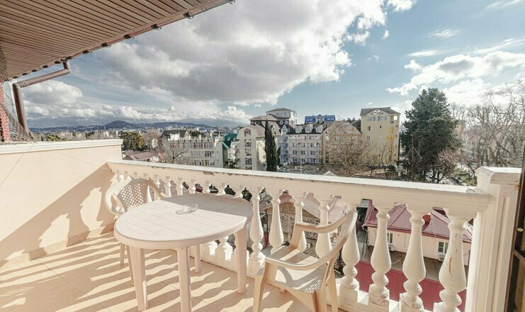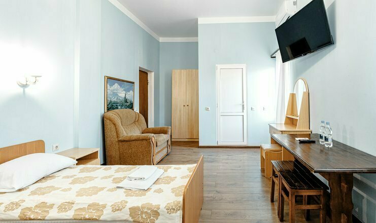 Отель соответствует современным стандартам туристической индустрии. К услугам гостей 39 номеров различной категории, круглосуточное и круглогодичное размещение, бесплатный Wi-Fi, прачечная, кафе на территории, видеонаблюдение, лифт. Номера оформлены в классическом стиле. В каждом номере ЖК-телевизор, холодильник, кондиционер, сан.узел, есть номера с видом на море и горы.