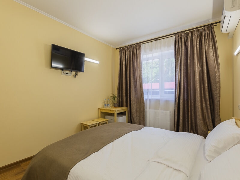 Стандарт Двуспальная кровать, третье место раскладывающийся диван. 4-й гость размещается на том же на диване.