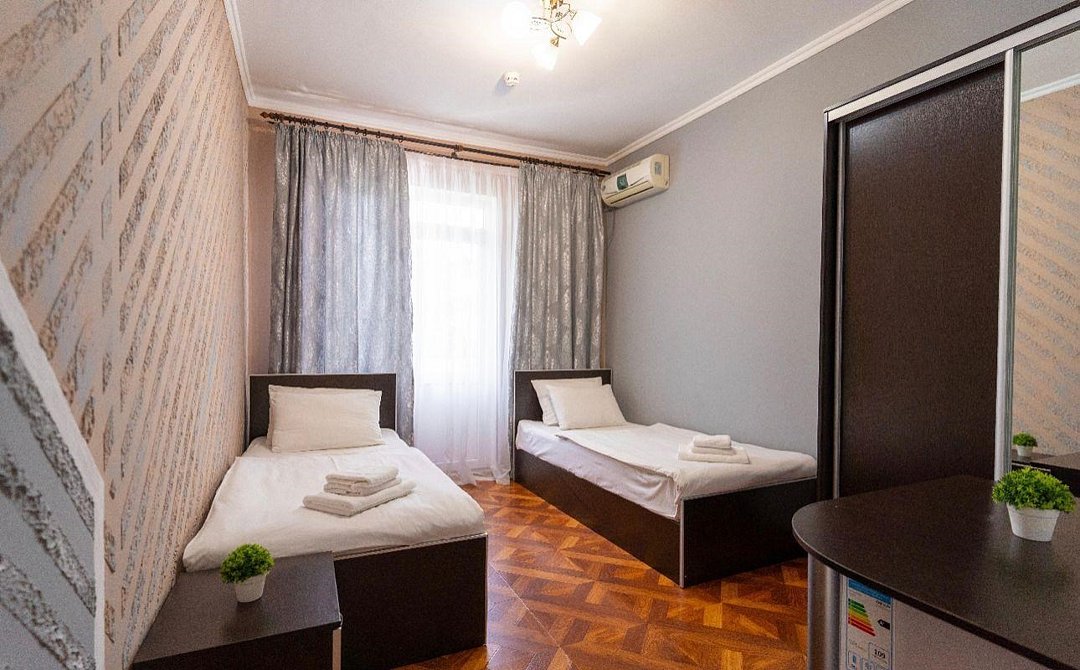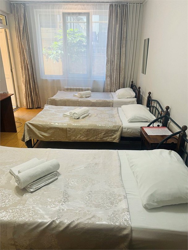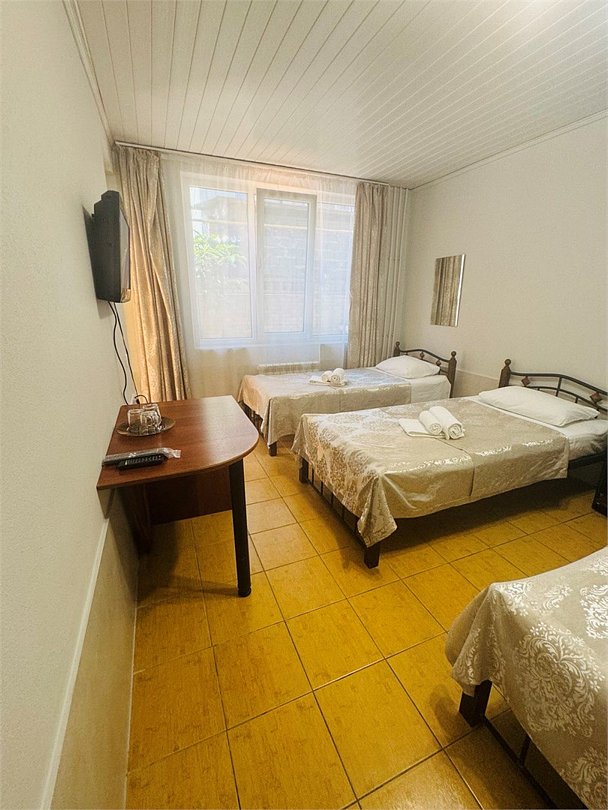 Трехместный номер эконом расположен на 1 этаже. В номере имеется кондиционер, тв, холодильник, туалет, а также туалетные принадлежностиУслуги и удобства