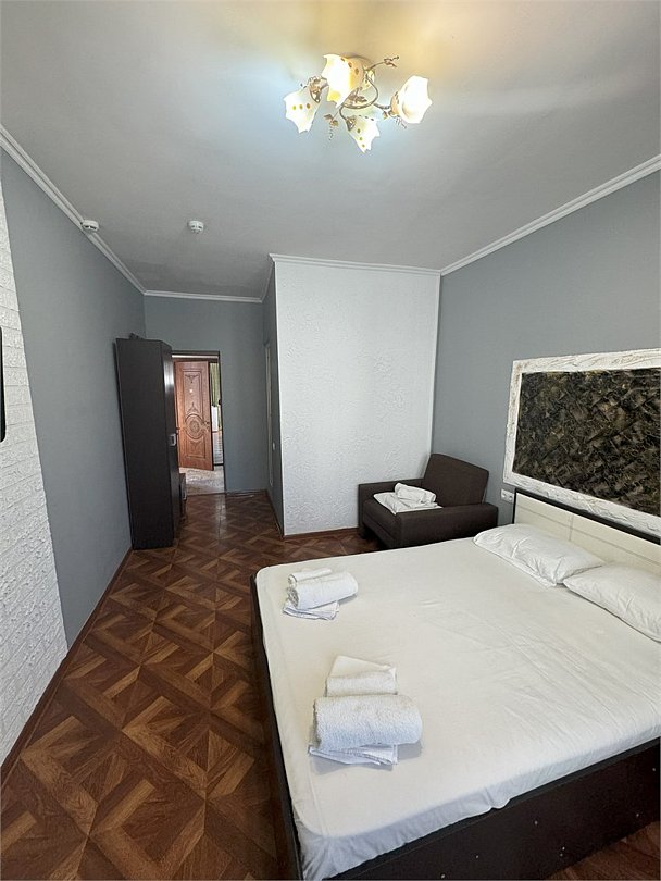 Трехместный номер улучшенный с балконом. Двухспальная кровать и кресло кровать удобства в номере. Номера на 4 2м этаже.Услуги и удобства