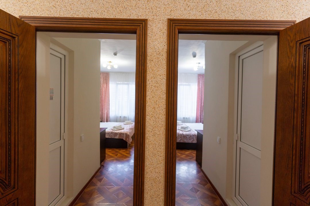 телевизор, два телевизора, Wi-Fi, интернет, холодильник, кондиционер, ванна или душевая кабина, санузел, дополнительный санузел, двуспальная кровать, две двуспальные кровати, зеркало, комод, набор посуды, раковина, душ, вид на сад, кулер на этаже, две спальни, тумба, туалетные средства, туалет, мини-холодильник, шкаф-купе, можно с питомцамиВ гостиничном номере