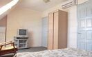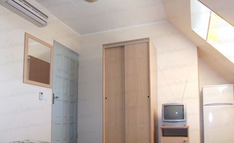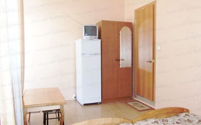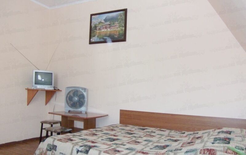 В номере: кровати, прикроватные тумбочки, журнальный столик, шкаф для одежды, зеркало, телевизор, вентилятор. Санузел на этаже.