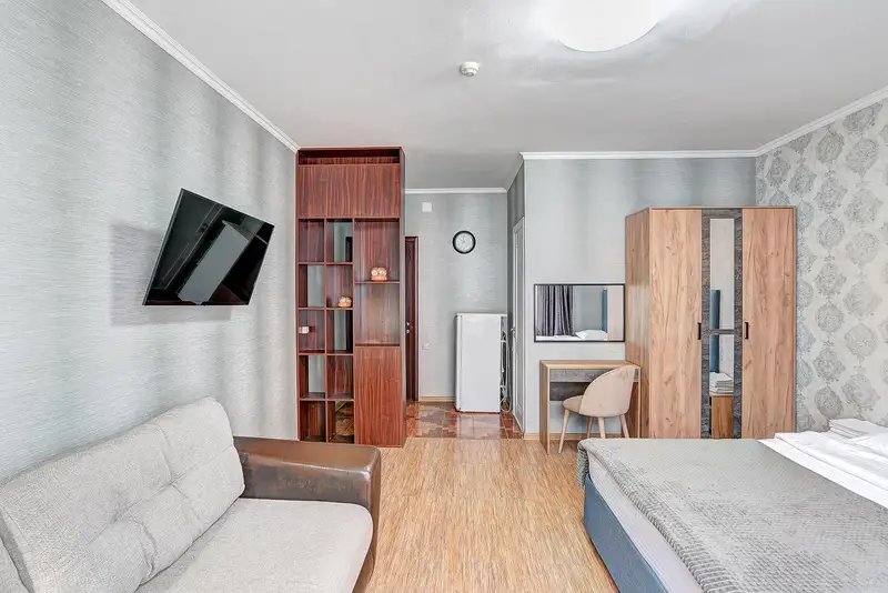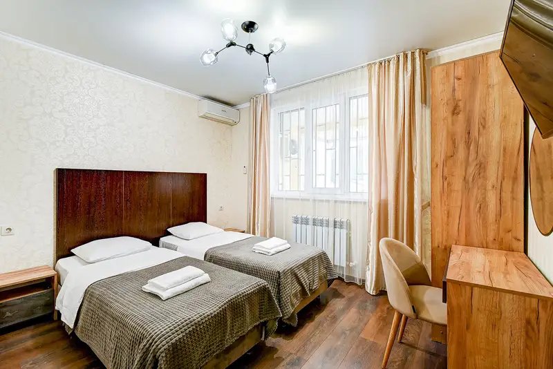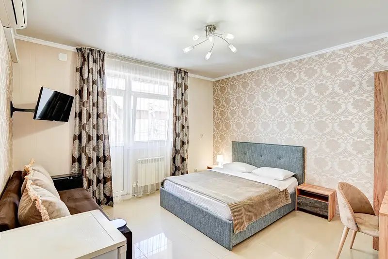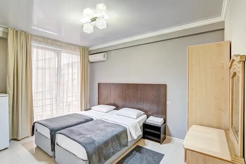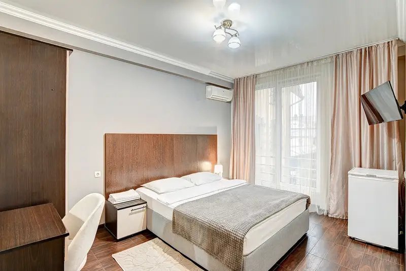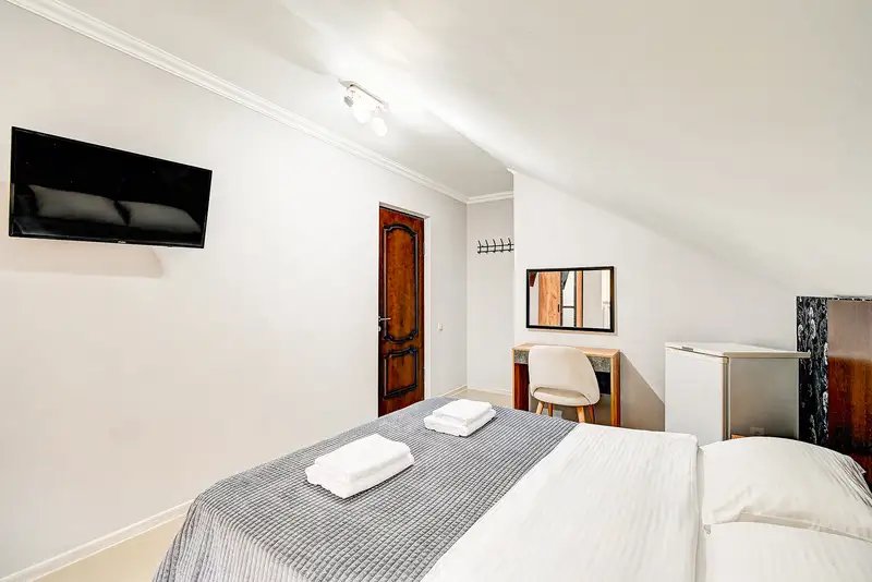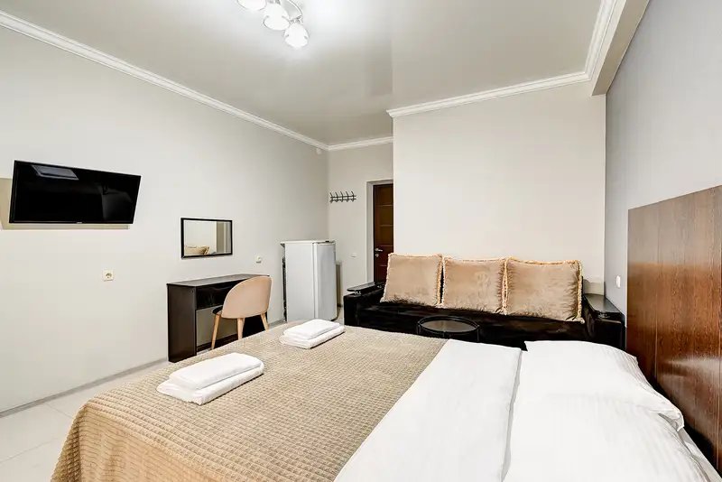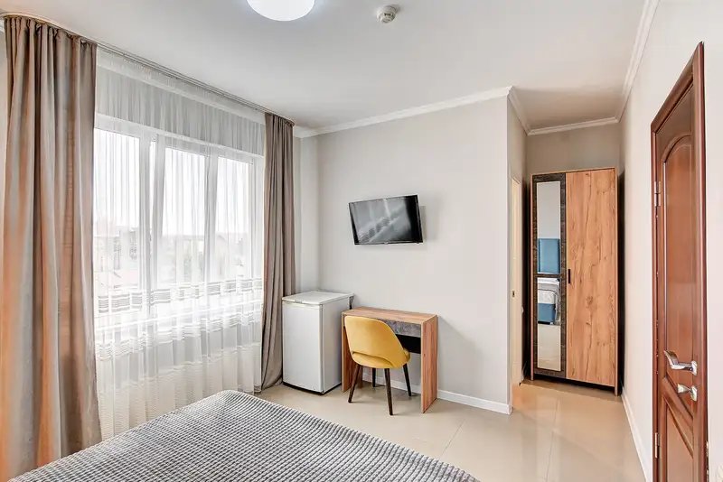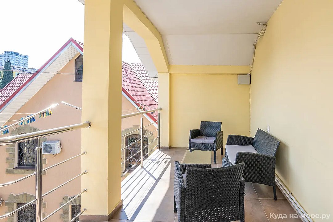 Номера в гостевом доме оформлены с заботой о комфорте, оснащены современной мебелью и необходимыми удобствами, такими как индивидуальные санузлы, телевизоры, холодильники и кондиционеры. Это создаёт приятную атмосферу для отдыха после насыщенного дня на побережье.