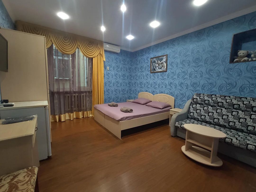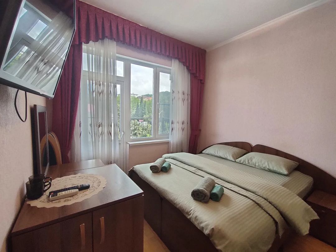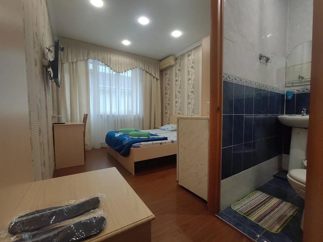 Гостевой дом занимает закрытую озелененную территорию всего в 400 метрах от побережья. Камерный жилой фонд состоит из 14 номеров с удобствами. В каждом номере все предусмотрено для комфортного пребывания: есть санузел c душевой кабиной, фен, кондиционер, холодильник, телевизор. На каждом этаже оборудована гладильная зона с доской и утюгом, а на первом установлена стиральная машина для самостоятельного пользования.