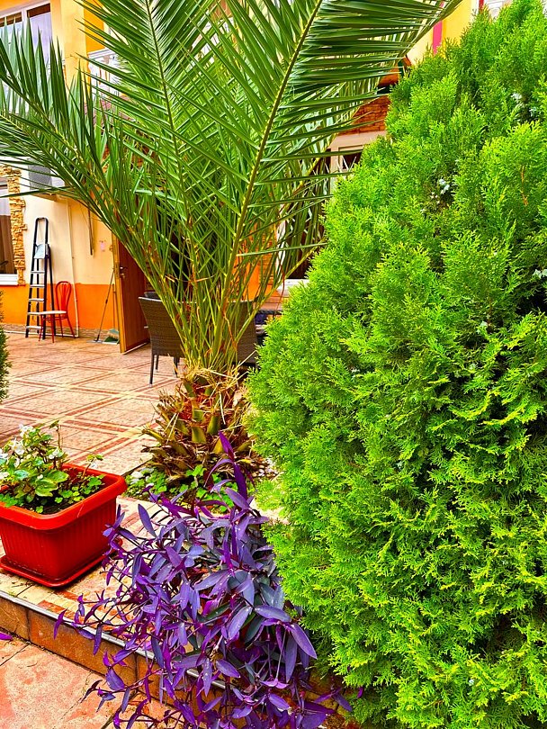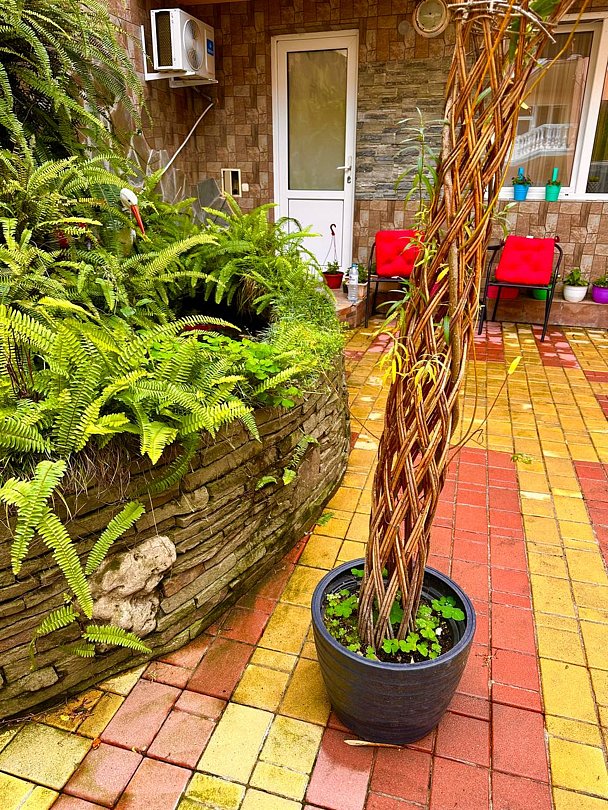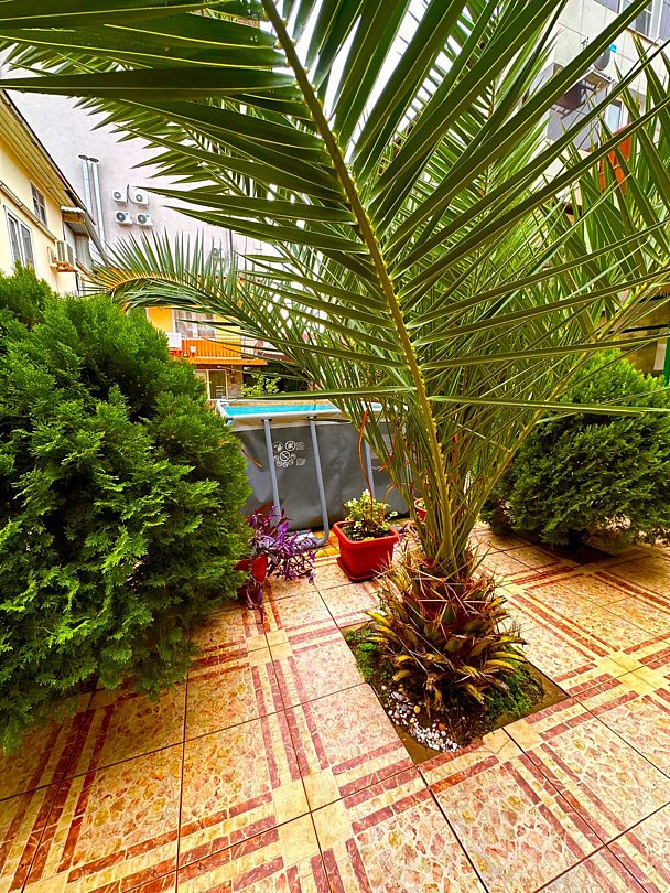 На территории гостевого дома имеется мини-кухня для самостоятельного приготовления пищи. На 2, 3 и 4 этажах расположены террасы, украшенные виноградными лозами. В распоряжении гостей бассейн для взрослых и детей. На 2 этаже расположена гладильная зона.