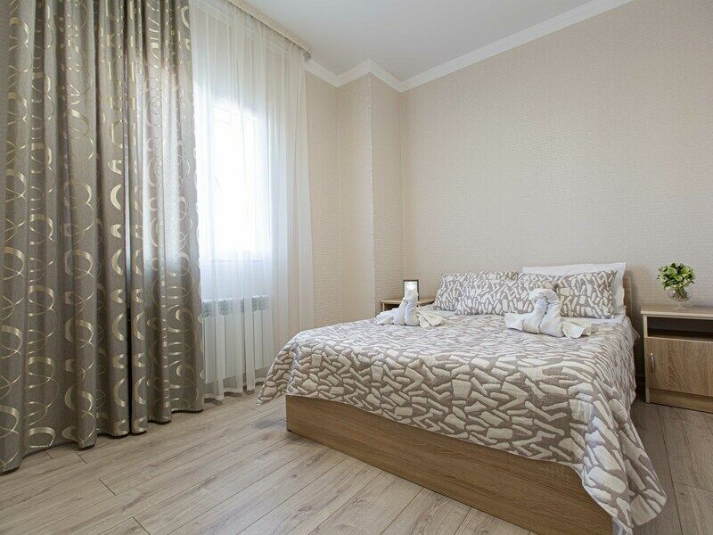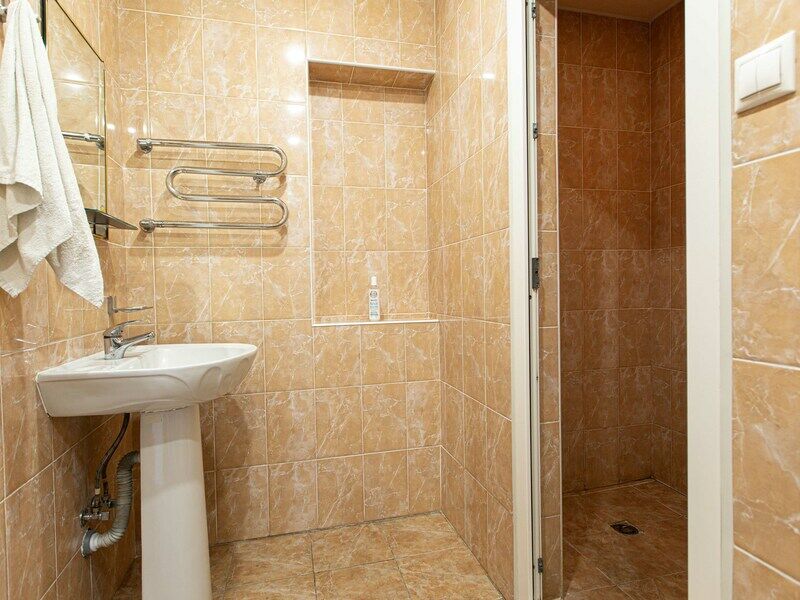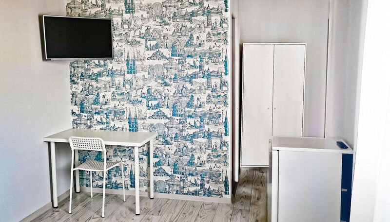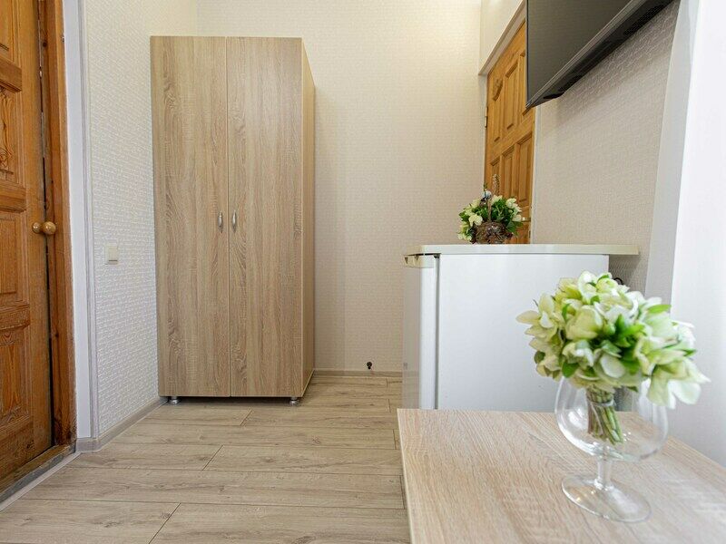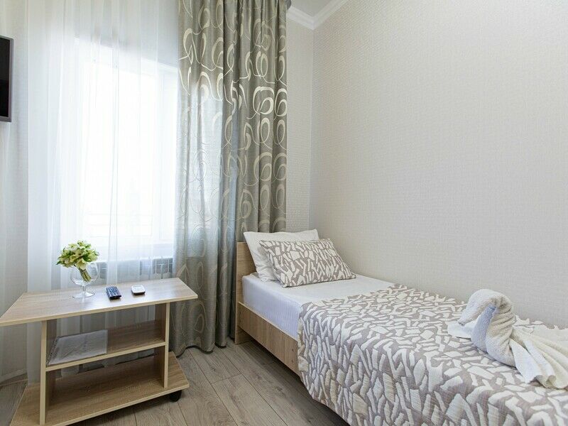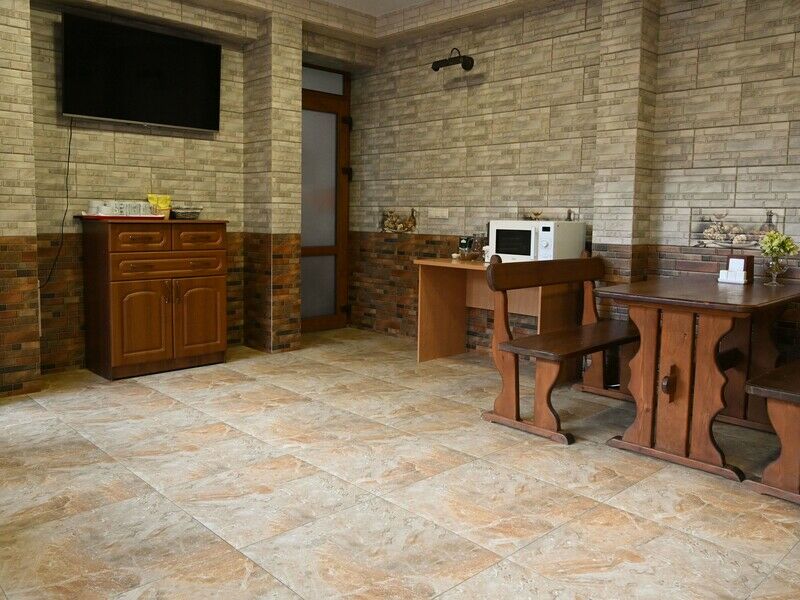 Гостевой дом состоит из 4 этажей, без лифта. Первый этаж состоит из обеденной зоны, детской зоны, облагороженной зоны отдыха. Шесть номеров с удобствами на блок расположены на 1 этаже имеют два санузла и две душевые кабины, общий холодильник на этаже. На остальных этажах номера стандарт с удобствами в номере.