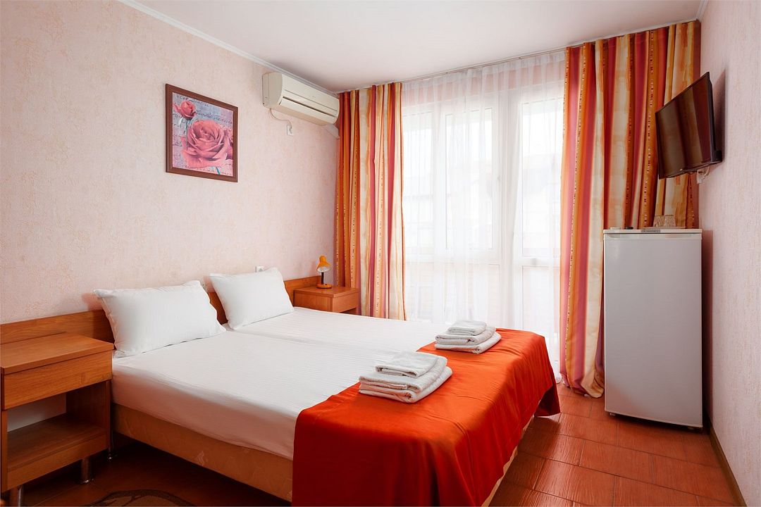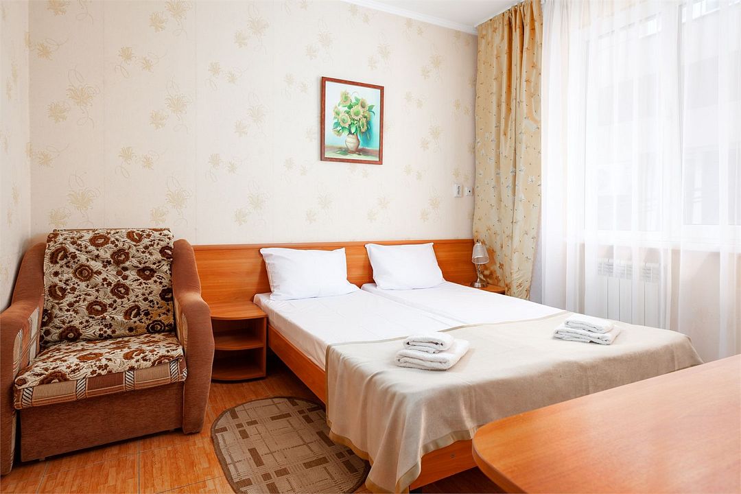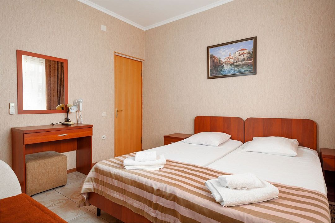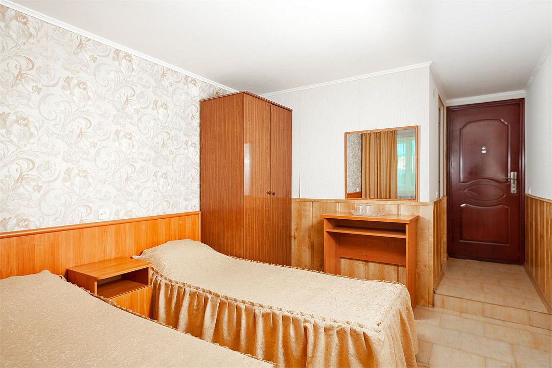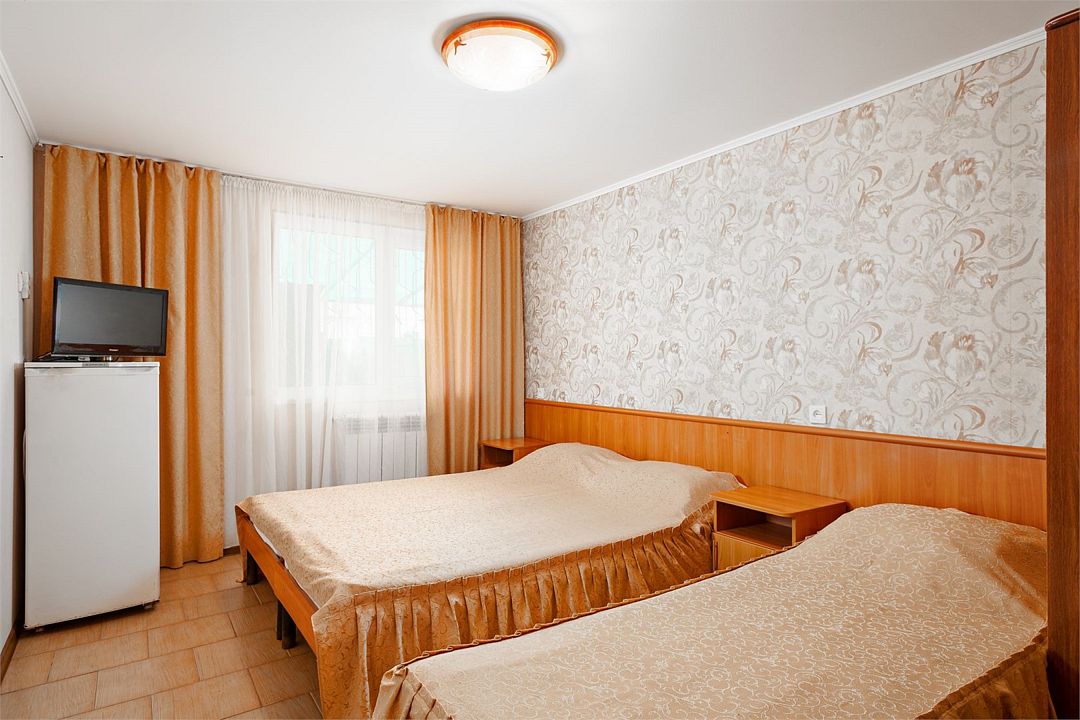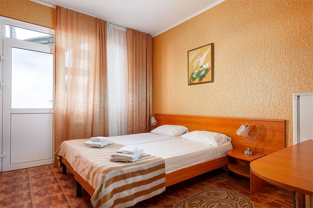Уютный однокомнатный номер, рассчитанный на 2 основных места. В комнате предусмотрено наличие двух полутороспальных кроватей. Общий балкон.Услуги и удобства