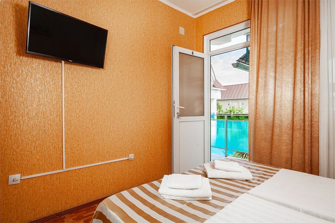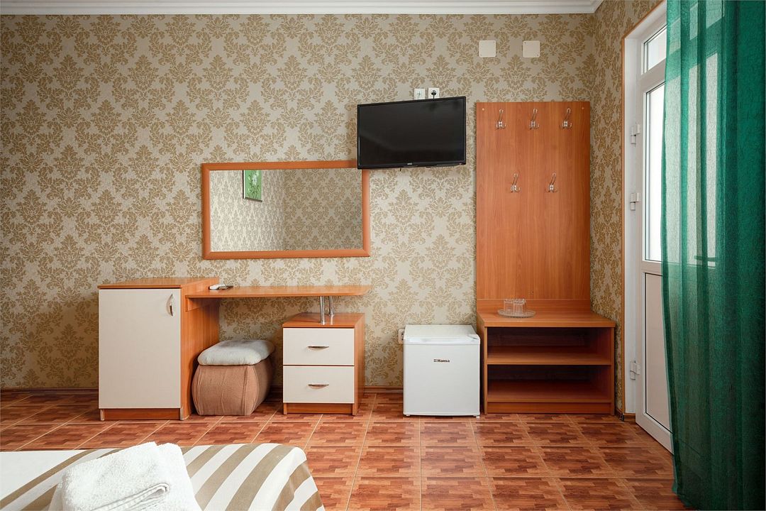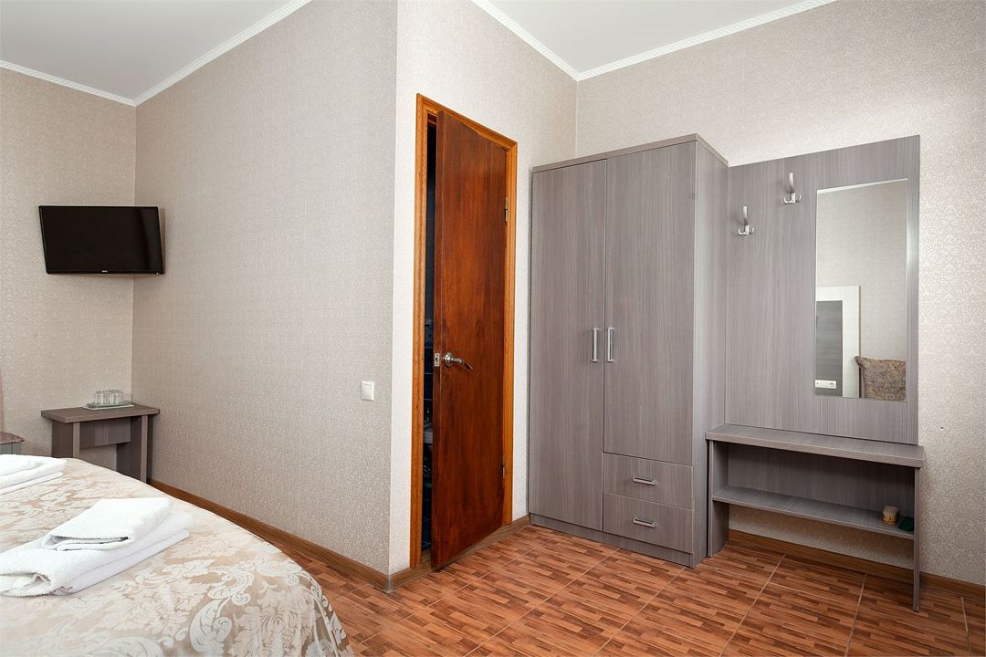 телевизор, Wi-Fi, холодильник, санузел, шкаф для одежды, вешалки, зеркало, унитаз, раковина, душ, три односпальные кровати, туалет, частный двор, без питомцевВ гостиничном номере