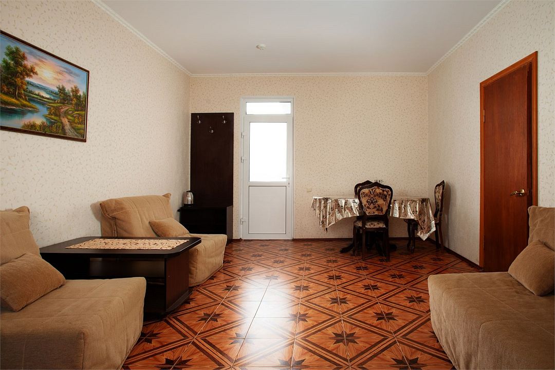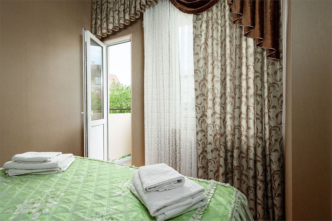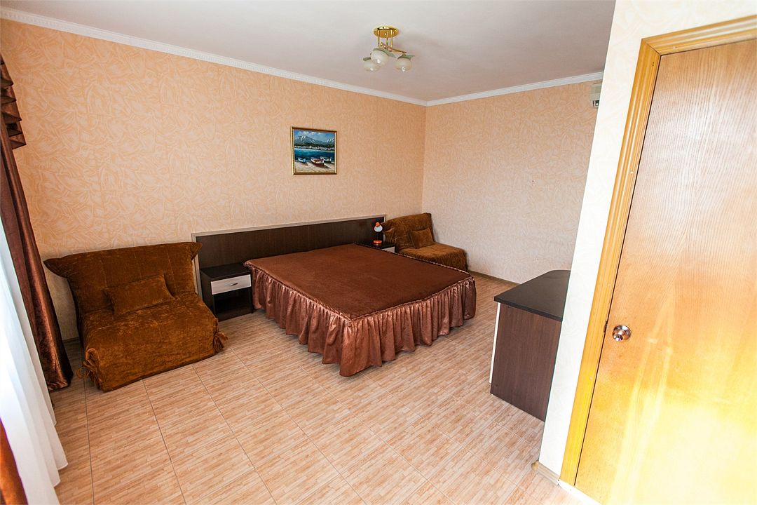 Светлый и уютный номер предназначенный для комфортного отдыха 2-3 гостей , семьи с ребенком или комнии друзей. Номер с общим балконом на 2-3 номера.Услуги и удобства