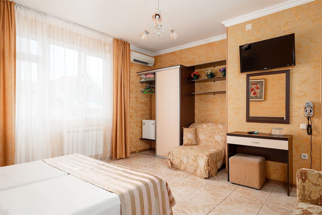 Однокомнатный номер на 1-м этаже, рассчитанный на 2 или 3 основных места. В комнате предусмотрено наличие трех односпальных кроватей.Услуги и удобства