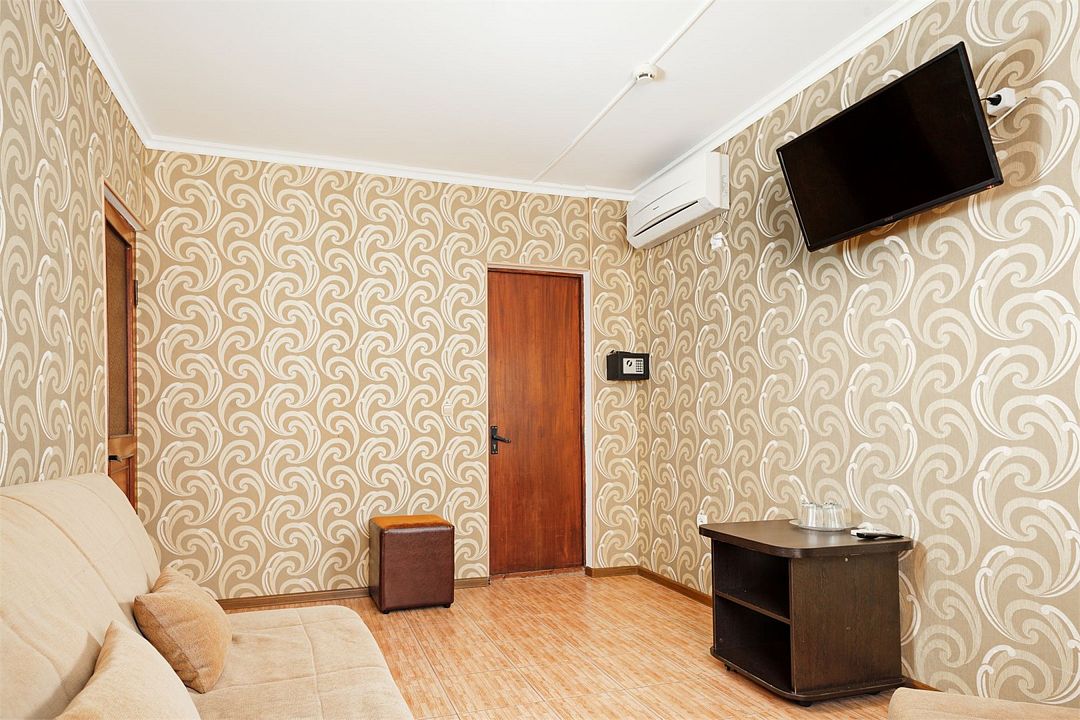 Wi-Fi, кондиционер, банные полотенца, две полутораспальные кровати, тумбы, вешалки, зеркало, сейф, унитаз, душ, стаканы, стул, туалет, диван-кровать, телевизор с плоским экраном, мини-холодильник, без питомцевВ гостиничном номере