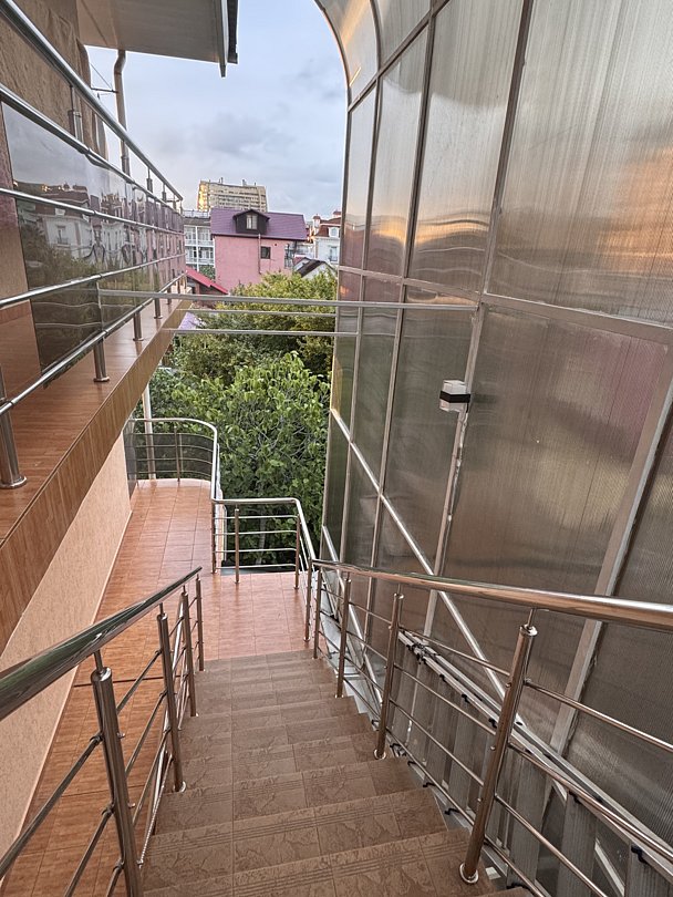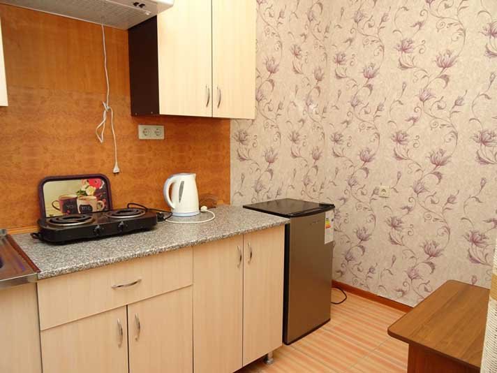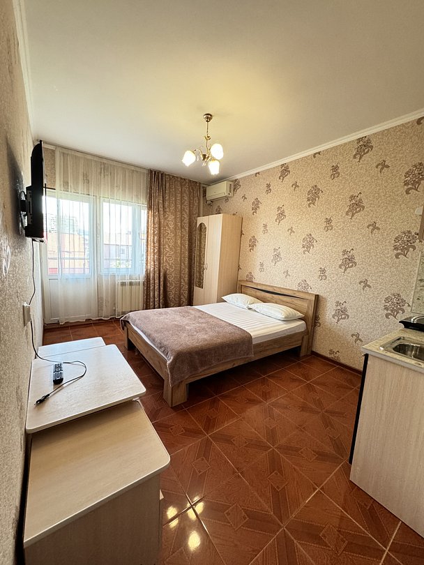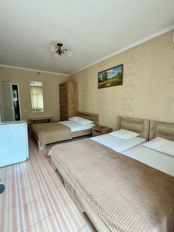 Комплекс, находящийся в тихом и зеленом частном секторе, включает в себя 2 корпуса — один двухэтажный, другой — четырехэтажный, оба без лифта. Гостей ожидают комфортабельные номера Стандарт. В каждом номере — собственный санузел, телевизор, кондиционер, мини-холодильник. На территории есть общая кухня, где гости могут приготовить или разогреть еду и сделать свой любимый горячий напиток. Гостям доступны услуги стирки и беспроводной интернет Wi-Fi.
