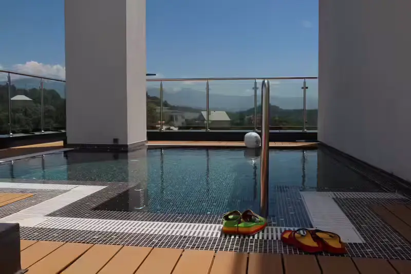 Путешествие с семьейОправдал все ожиданияОтдыхали неделю, брали два номера - обычный стандарт и студия, в номерах всё соответствует фото. Плюсы для меня : удобные кровати, белое бельё, нет коврового покрытия, полы протирают ежедневно. Ремонт качественный, сантехника хорошая и всё работало. Персонал - молодцы, на всё быстро реагируют, помогают, вопросы решают оперативно. Завтраки - отличные, вкусно, сытно, муж ел салаты, наведался практически до ужина :) разнообразно, был арбуз, запеканки, персики, сливы, оливье... всегда яйца и омлет, выбрать точно можно. Терраса на 6 этаже и бассейн - украшение отеля, виды шикарные, можно посидеть, отдохнуть, пока дети купаются в бассейне, нашим осень понравился бассейн, ныряли, прыгали от души. Рядом 5-ка. Обедали в городе, иногда заказывали доставку. Месторасположение - высоко!!! Мы были на машине! На море ездили к пляжу рэдиссон или на крылья Балтики. От отеля метров 200 автобус, на нём бесплатно спускают вниз там до моря идти минут 20 по моим расчётам, но мы сами не ходили, точно не знаю. Вот это основное - если вы на машине и готовы лишний раз потратиться на такси, то сложностей нет. Погулять на фонтаны, набережную - везде ехать, пешком не дойдете. Мы знаем Адлер хорошо, все понимали, поэтому ожидания от отеля полностью оправдались. Парковка у отеля на 4-5 машин, персонал всегда помогал, если не было места.