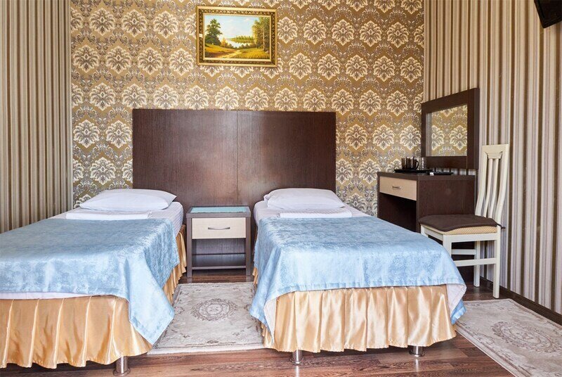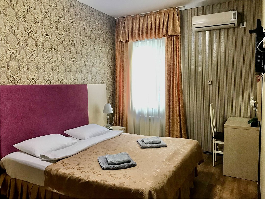 Wi-Fi, холодильник, кондиционер, светильник, фен, банные полотенца, две односпальные или большая двуспальная кровать, тумбы, шкаф для одежды, вешалки, багажная тумба, зеркало, чайный набор, сейф, чайник, унитаз, раковина, отопление, душ, вид на город, вид во двор, стаканы, туалетный столик, стул, туалетный столик, туалетные средства, туалет, сушилка для белья, цифровое тв, телевизор с плоским экраном, гостиничная парфюмерия, номер для некурящих, можно с питомцамиВ номере