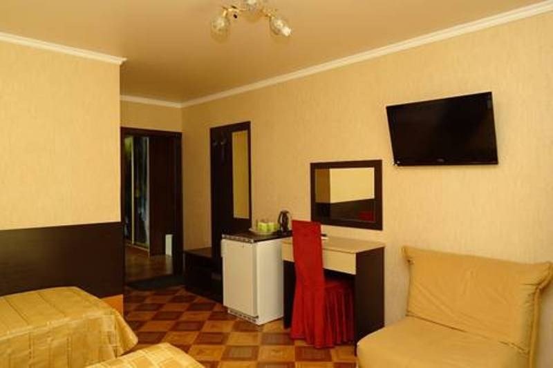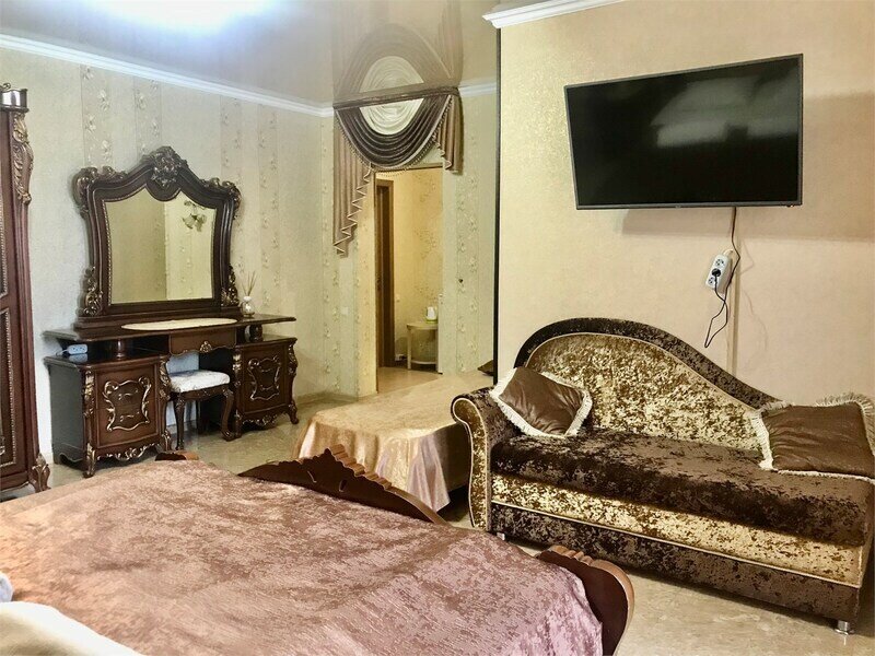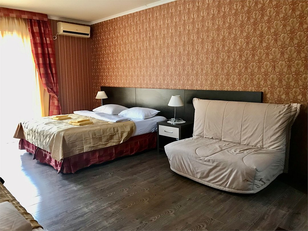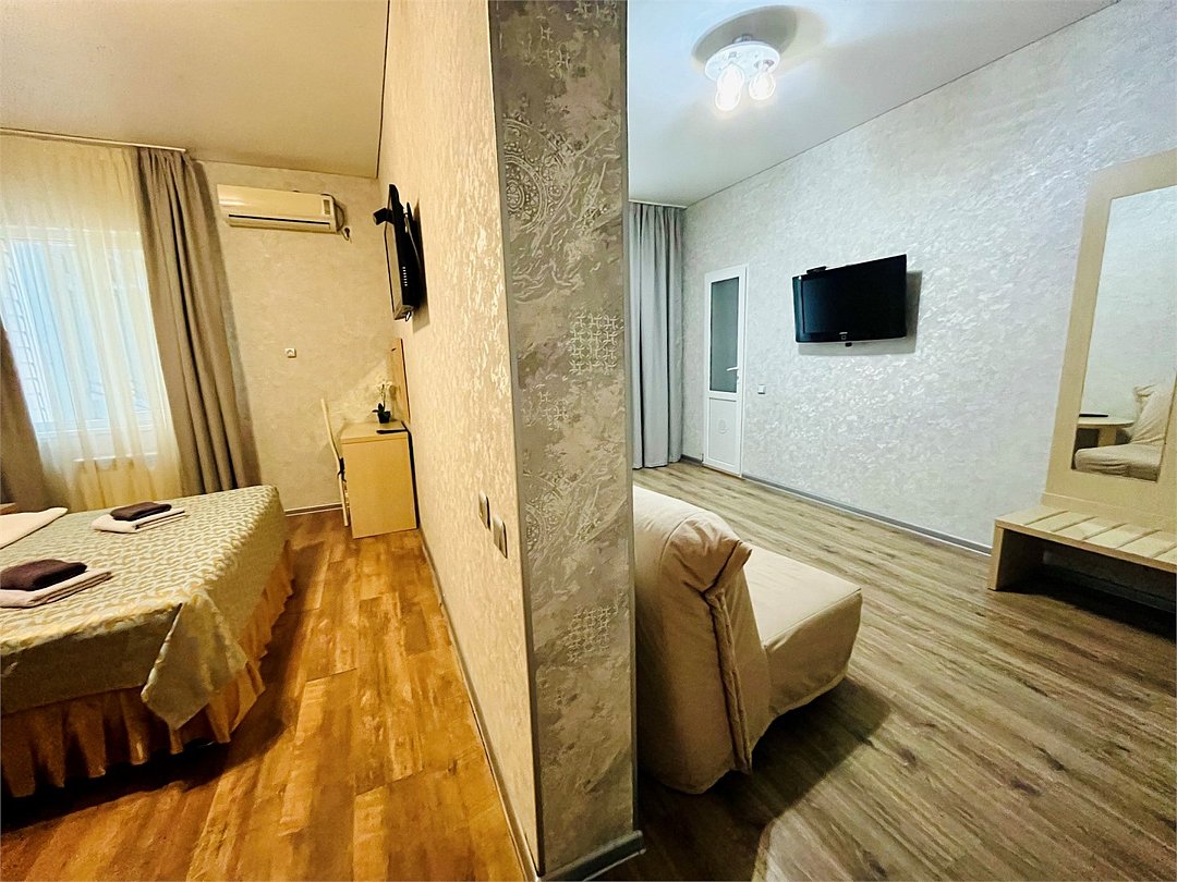 два телевизора, Wi-Fi, холодильник, кондиционер, светильник, фен, санузел, банные полотенца, двуспальная кровать, односпальная кровать, две односпальные или большая двуспальная кровать, тумбы, шкаф для одежды, вешалки, журнальный столик, письменный стол, багажная тумба, зеркало, две комнаты, чайный набор, сейф, чайник, унитаз, раковина, гостиная зона, душ, вид во двор, туалетный столик, стул, туалетный столик, туалетные средства, туалет, цифровое тв, раскладной диван, телевизор с плоским экраном, гостиничная парфюмерия, номер для некурящих, двухъярусная кровать, кресло-кровать, можно с питомцамиВ номере