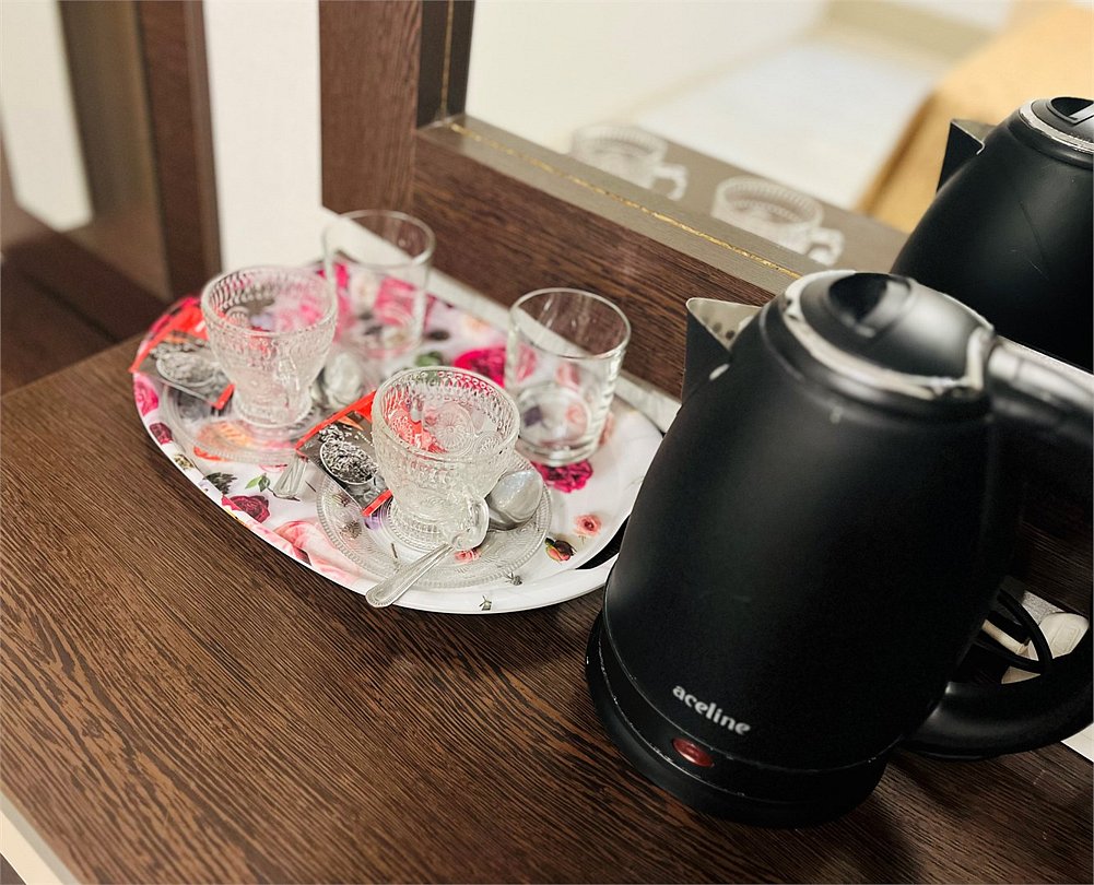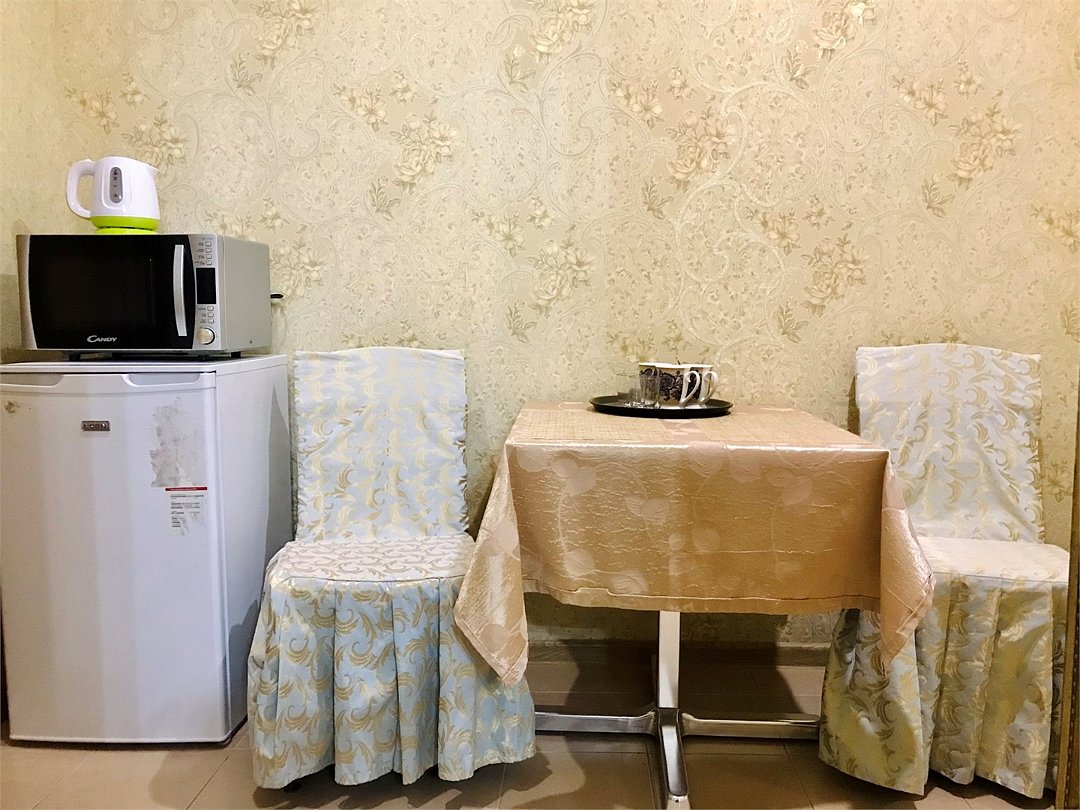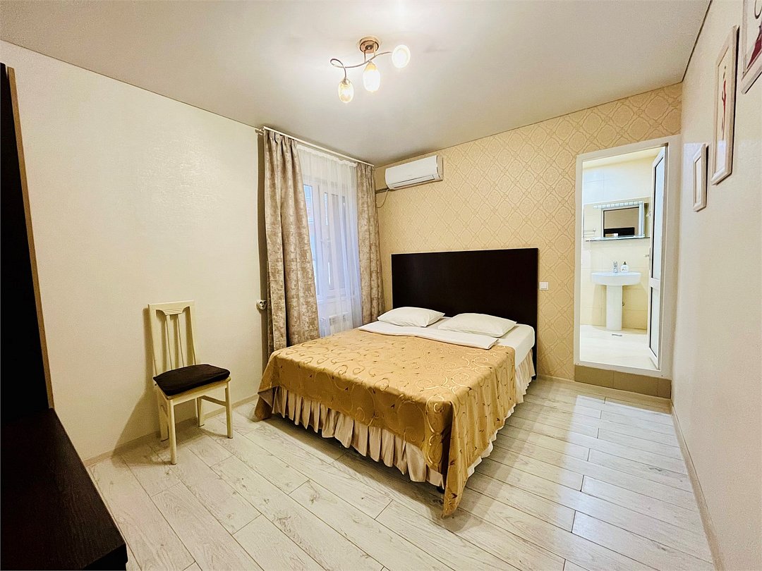 Wi-Fi, холодильник, кондиционер, светильник, фен, микроволновая печь, ванная комната, ванна, теплый пол, халаты, банные полотенца, тапочки, кровать «King size», односпальная кровать, диван, тумбы, стулья, шкаф для одежды, зеркало, мебельный гарнитур, чайный набор, набор посуды, чайник, унитаз, раковина, отопление, вид во двор, кухонная посуда, стаканы, столовые приборы, туалетный столик, стол, туалетный столик, туалетные средства, туалет, цифровое тв, телевизор с плоским экраном, гостиничная парфюмерия, номер для некурящих, пуфик, кресло-кровать, можно с питомцамиВ номере