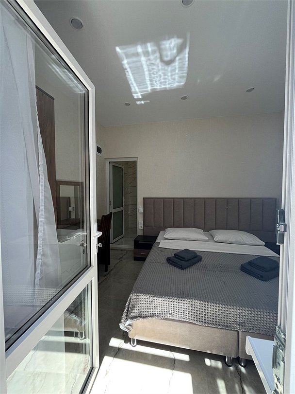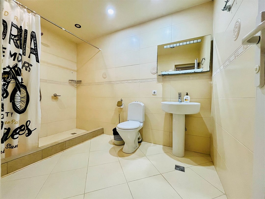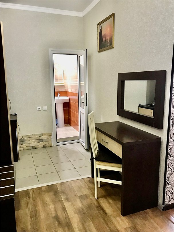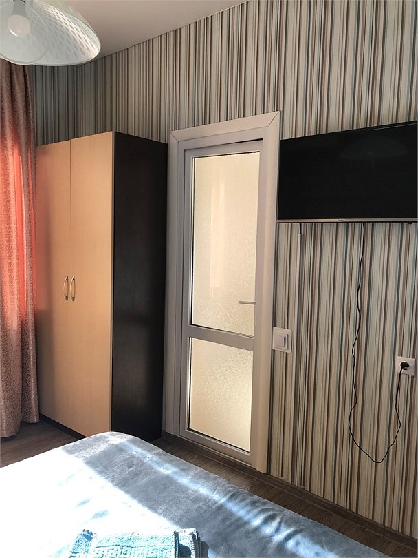 Просторная квартира на первом этаже, с отдельным входом. Имеется просторная гостинная, которая прекрасно подойдет для проведения домашних торжеств. Спальня изолирована, имеет собственный санузел. Кухня просторная с большим обеденным столом и оборудована всем необходимым. Также в квартире имеется еще один санузел с душем. Прекрасный вариант для комфортного семейного отдыха.Услуги и удобства