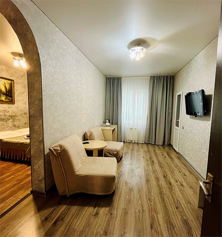 Четырехместный номер Комфорт-класса, без балкона. В номере 2 комнаты, имеется гостевая зона. Собственный санузел.Услуги и удобства