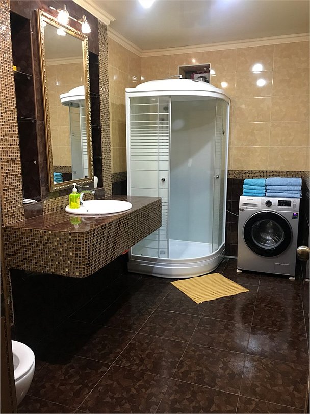 Двуспальная кровать, угловой диван-кровать, диван-кровать, софа, с/у с душем, 2 ТВ, 2 кондиционера, холодильник, кухня, микроволновая печь, плита и духовой шкаф, чайник, фен, утюг, стиральная машина
