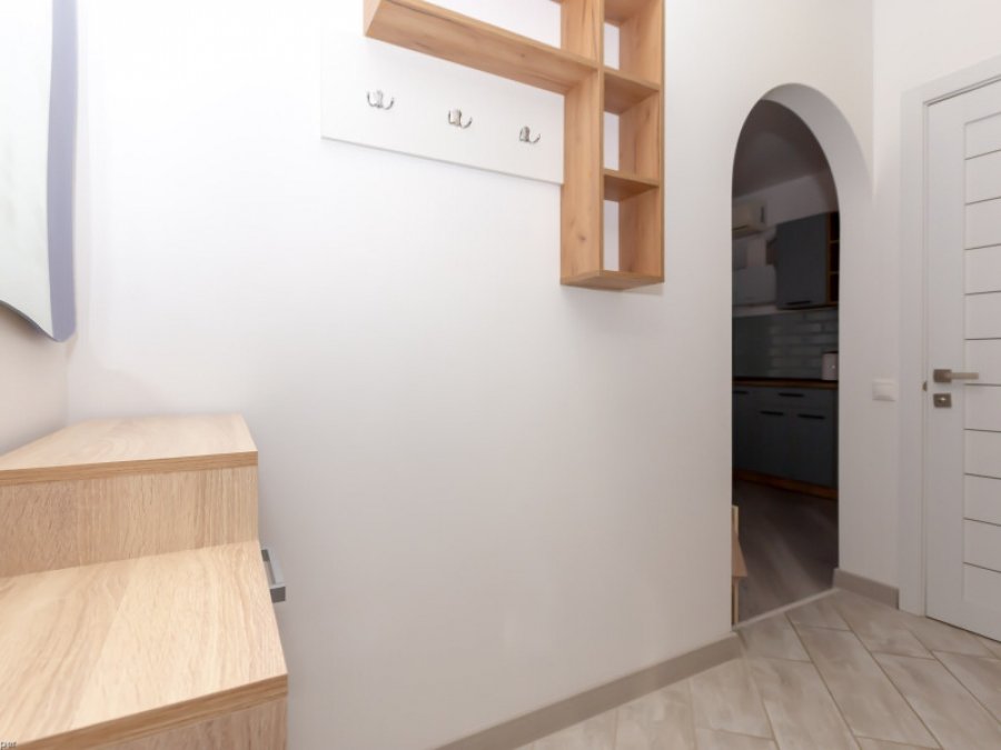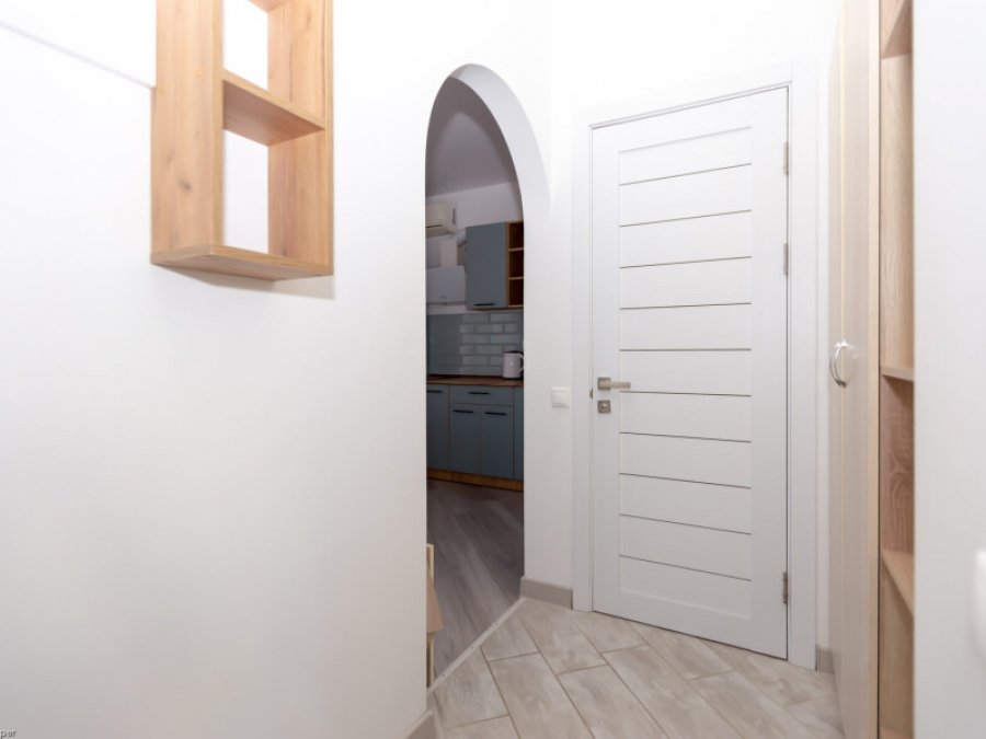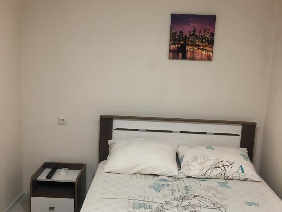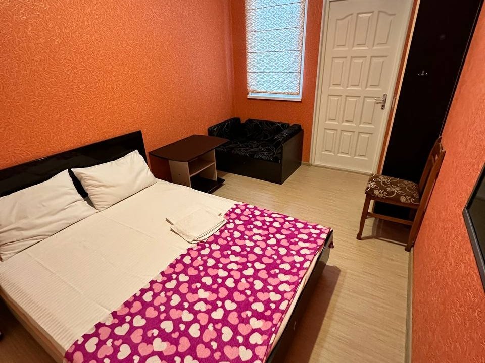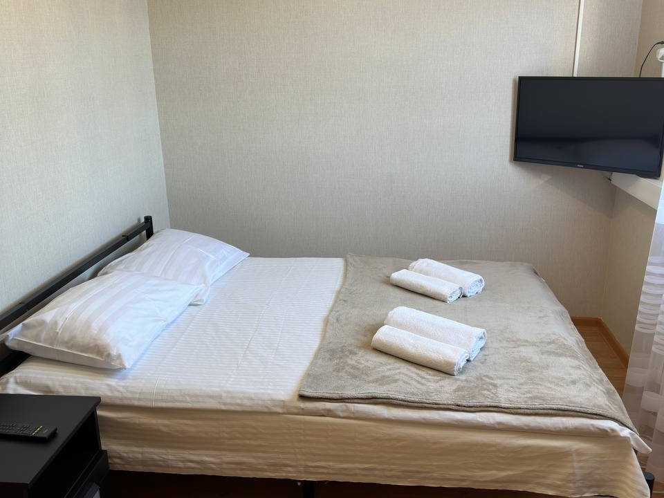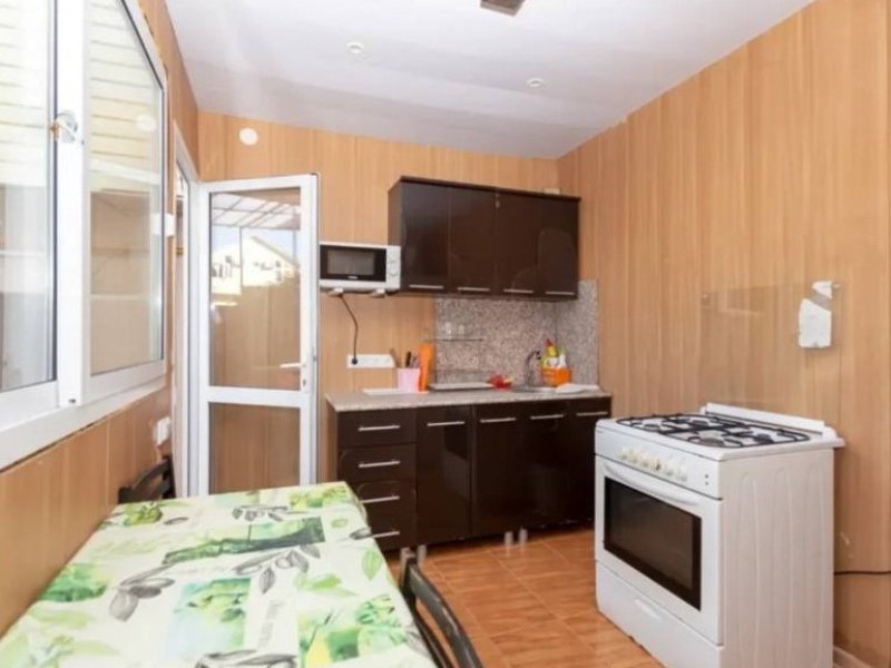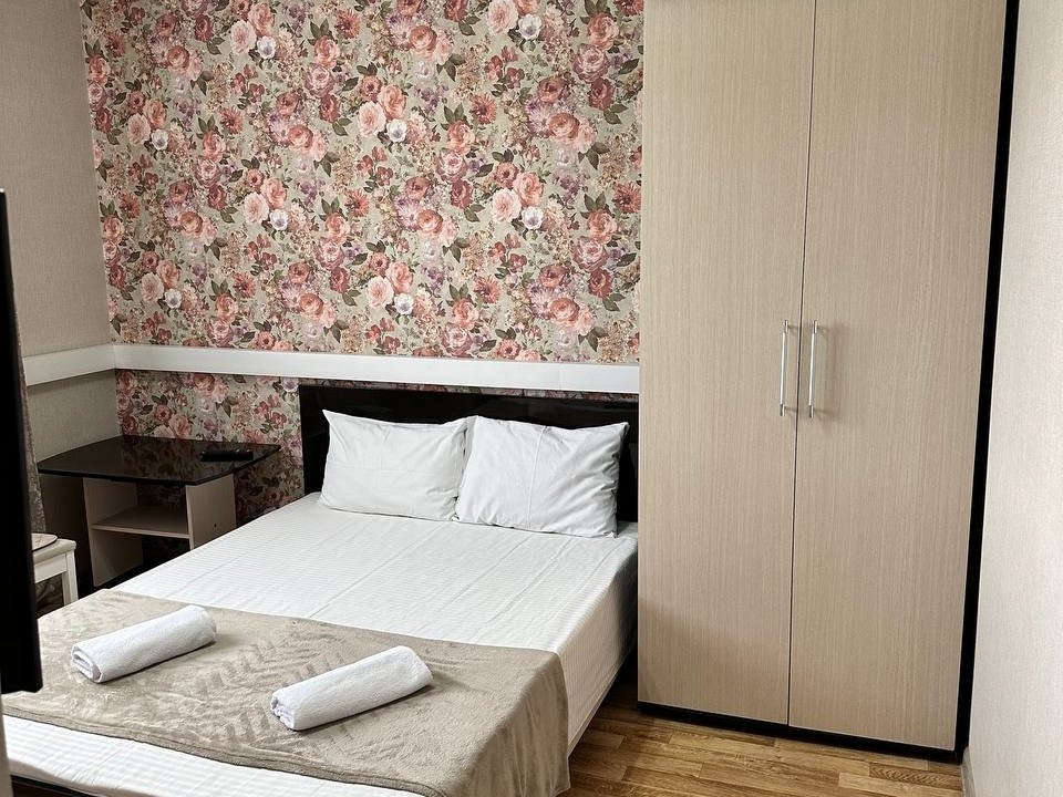 Однокомнатная квартира с полноценной зоной для самостоятельного приготовления пищи подойдет для гостей, которые привыкли к собственной домашней еде. На кухне есть все необходимое: холодильник, плита, чайник, посуда для приема и для приготовления пищи, вытяжка и кондиционер. Из мебели на кузне так же имеется обеденная зона со стульями и при необходимости можно разложить спальное место. В квартире так же имеется полноценная изолированная комната для отдыха с двуспальной кроватью, телевизором и кондиционером. В квартире так же имеется санузел с современным свежим ремонтом и стиральная машина.В номере