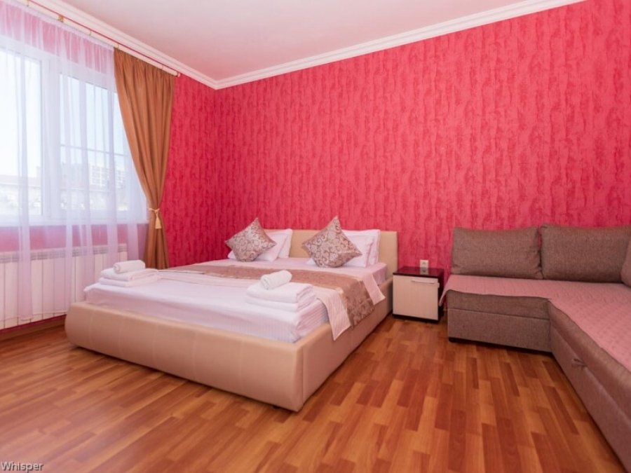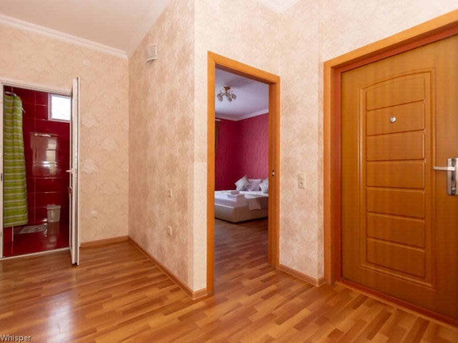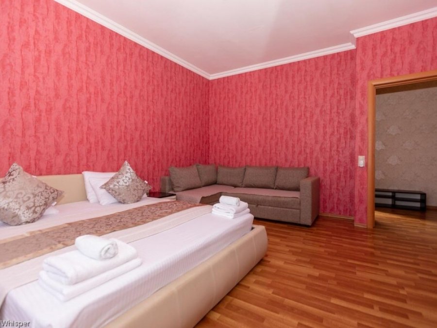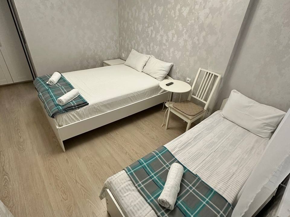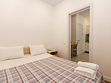 Двухкомнатная квартира с полноценной зоной для самостоятельного приготовления пищи подойдет для гостей, которые привыкли к собственной домашней еде. На кухне есть все необходимое: холодильник, плита, чайник, посуда для приема и для приготовления пищи, вытяжка и кондиционер. Из мебели на кухне так же имеется обеденная зона со стульями. В квартире так же имеются две полноценная изолированные спальни с двуспальной кроватью, телевизором и кондиционером. В квартире так же имеется санузел и стиральная машина.В номере