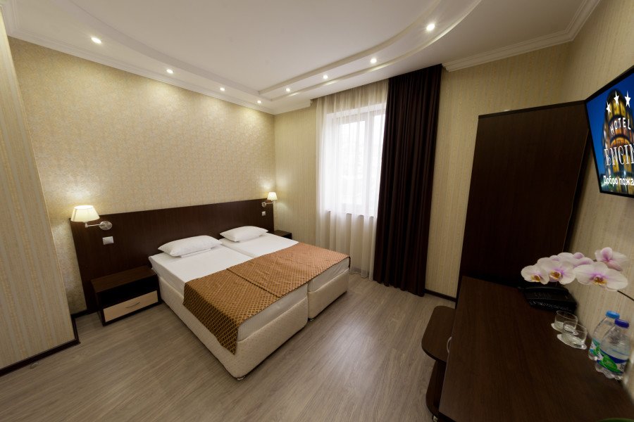 Одна двуспальная кровать, одна диван-кроватьВ гостиничном номере
