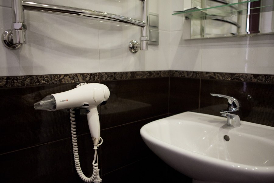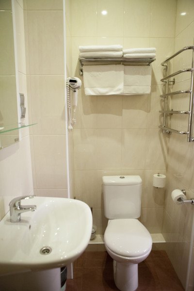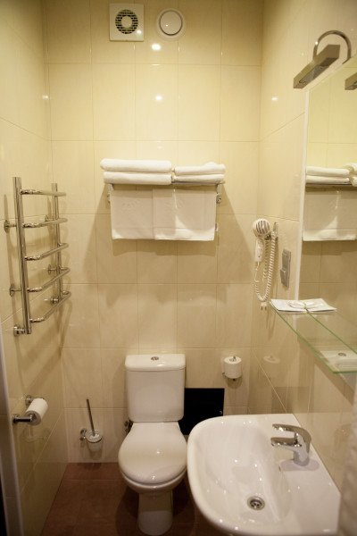 Номера чистые, все вовремя меняли, в номере есть холодильник, фен, горячий полотенцесушитель, телевизор, небольшой сейф для ценных вещей, утюг с гладильной доской один- расположен в коридоре на 4 этаже, кулеры на 1 этаже, есть лифт-очень удобно.
