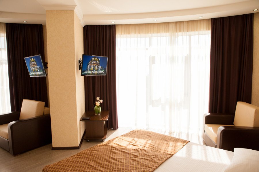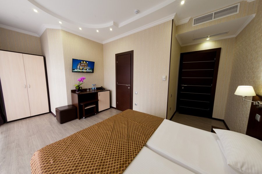 Путешествие с семьейНам понравилось!Отдыхали с мужем и ребёнком 5 лет. Приехали рано, в 8 утра, за 1.5 нас заселили сразу. Номер стандартный с балконом, все было комфортно, чисто. Еда: завтрак можно выбрать, огромного размера,кофе растворимый, чай, при желании можно кофе в машине заказать, блины очень вкусные! Море: далековато и в гору, но для нас как фитнес был подъем и спуск. Территория: ухоженная, есть столики и кресла- вечером можно выпить, покушать. Сотрудники: убирают быстро, меняют постельное, полотенце- согласно расписанию. Жанна - на ней все держится, как пчелка, поможет решить любой вопрос, очень отзывчивая; девочки на рецепции ( молоденькие) помогали во всех вопросах. Предложения: 1. добавить пару приборов в номер - попить чай или кофе, чайник. 2. Темные полотенце для моря- по 1 на гостя. 3. прачку сделать или машинку поставить, возможность постирать за отдельную плату. Спасибо за все, особенно Жанне! Варвара, Александр, Лерочка.