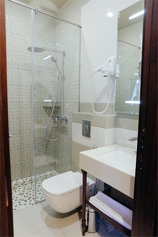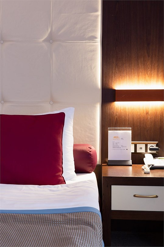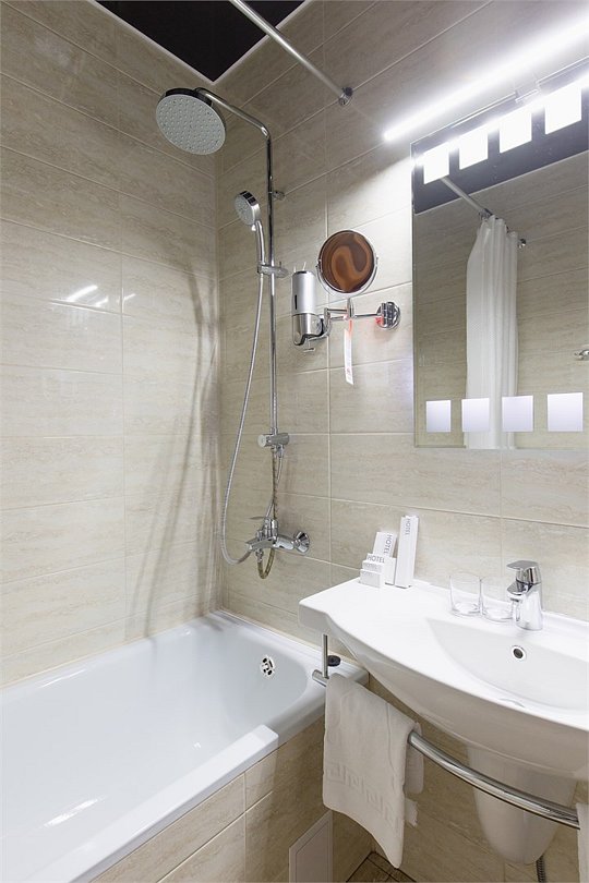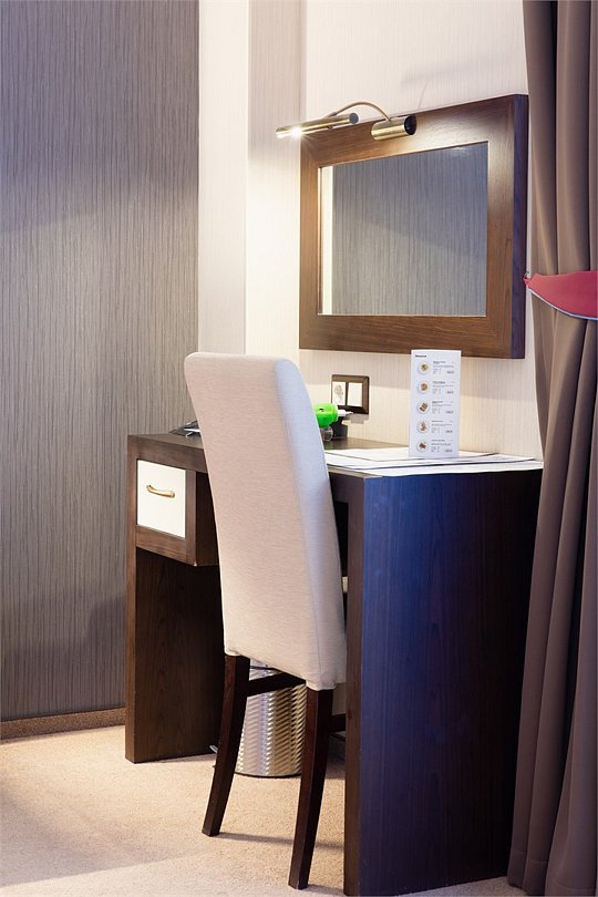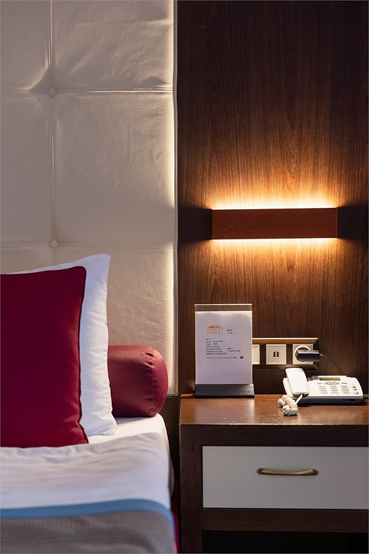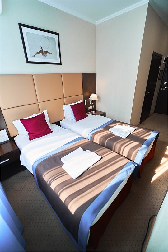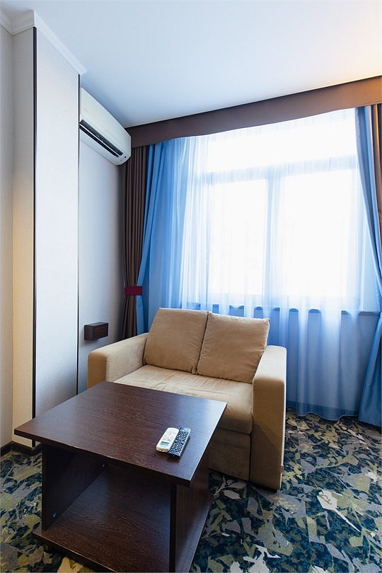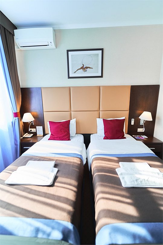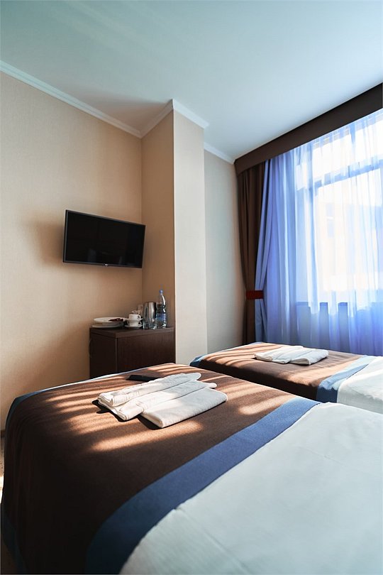 Стильный и современный однокомнатный номер с балконом (25 кв.м.), расположенный на 4 или 5 этаже. В номере одна двуспальная кровать или две односпальные кровати, телевизор, кондиционер, холодильник, рабочий стол, гладильная доска, утюг, ванная комната с душевой кабиной и косметическими средствами, фен, тапочки, халат.Услуги и удобства