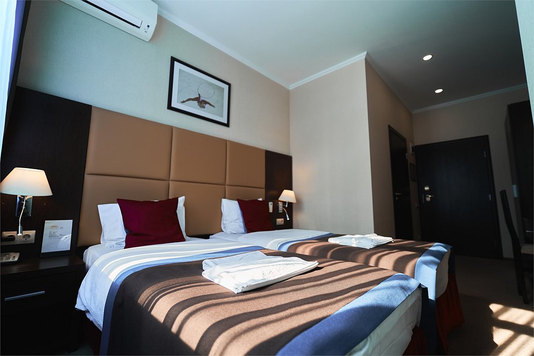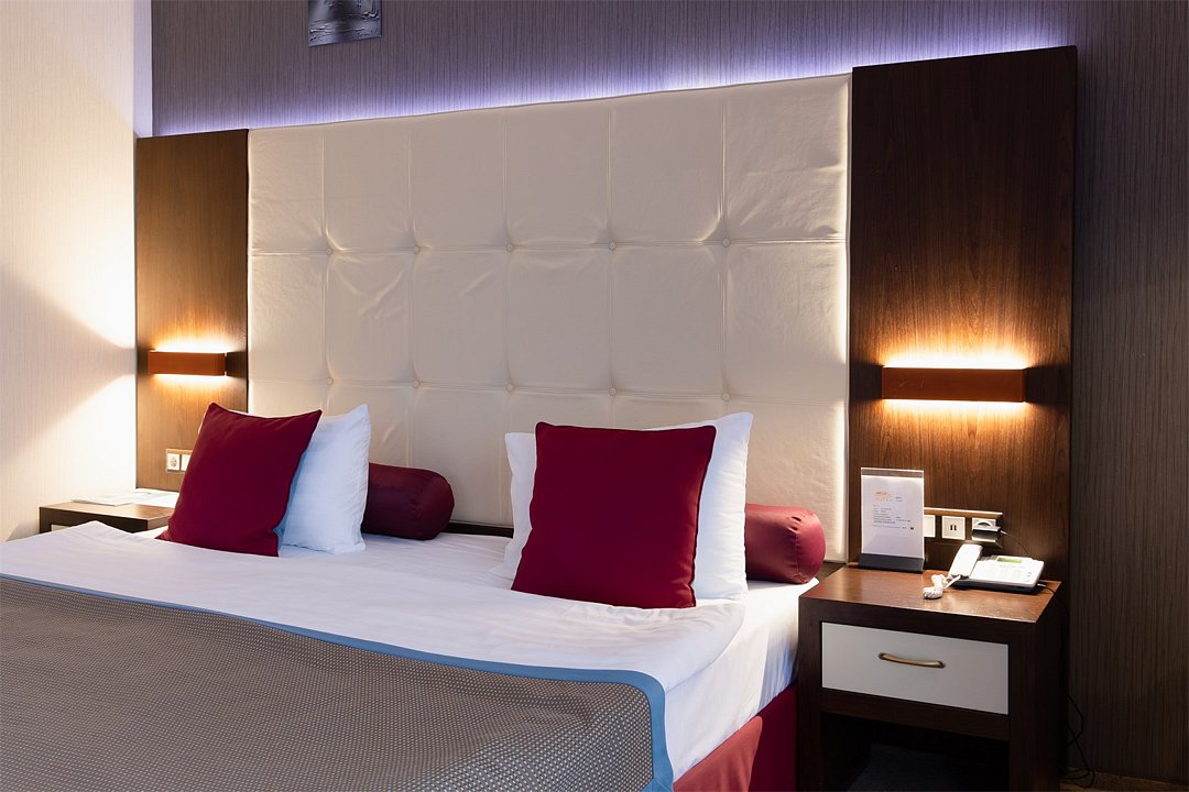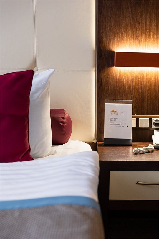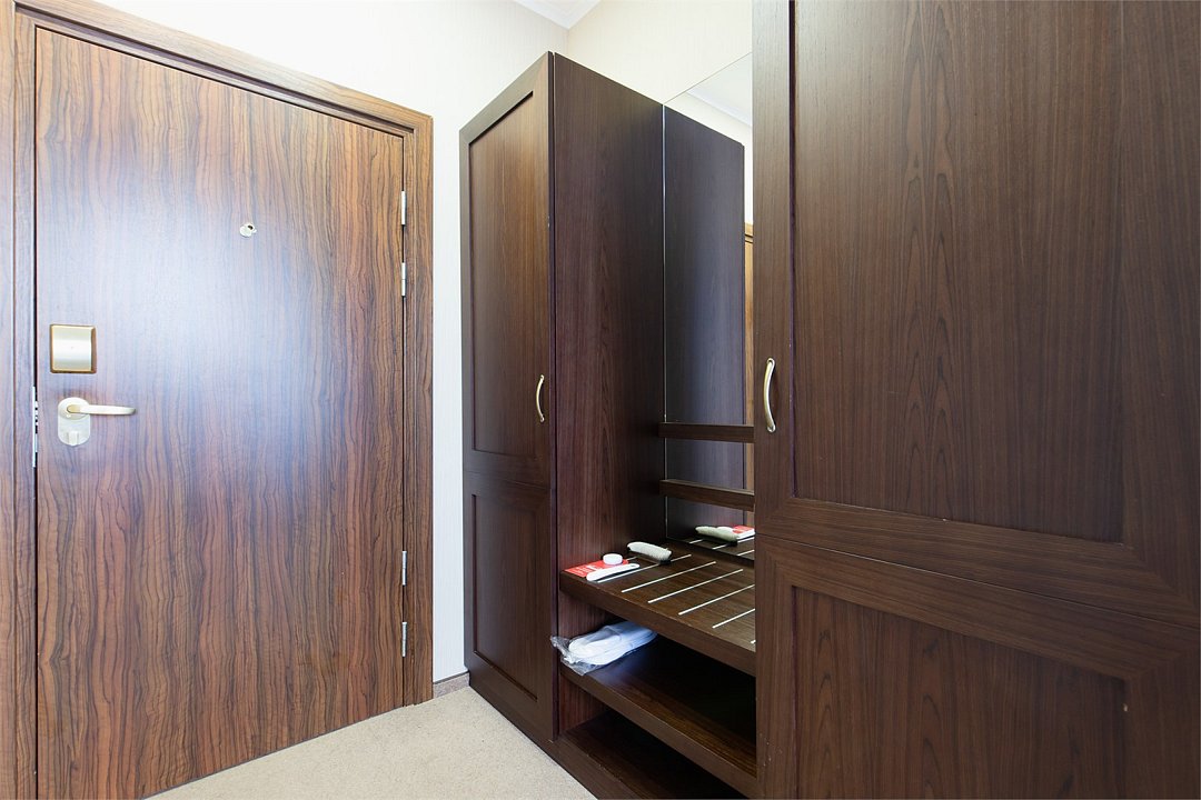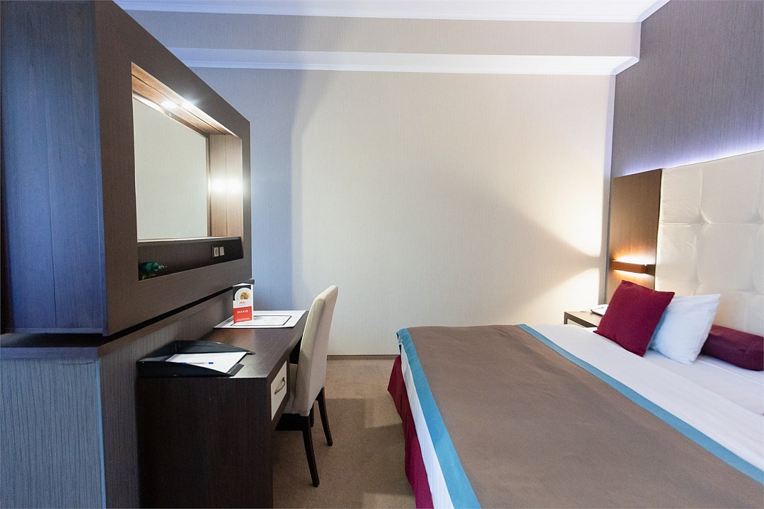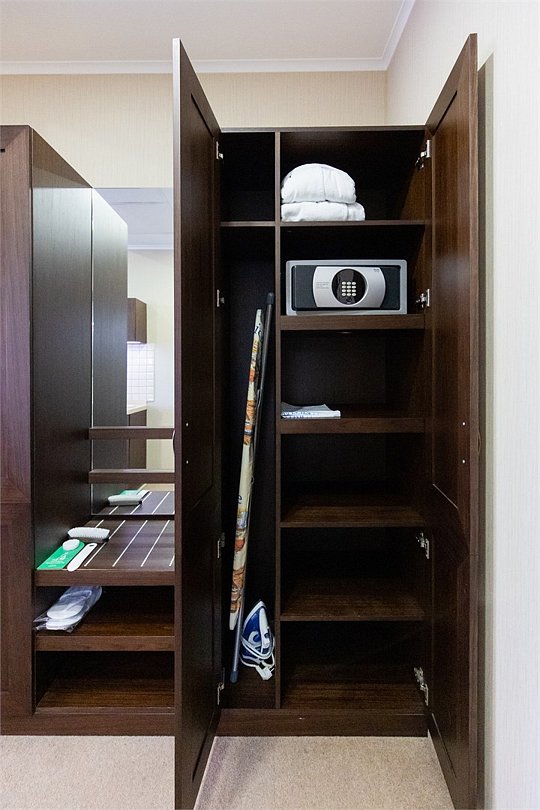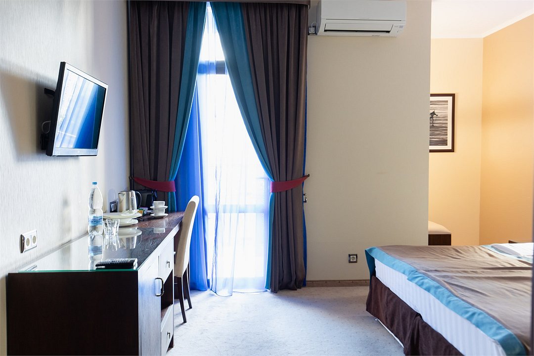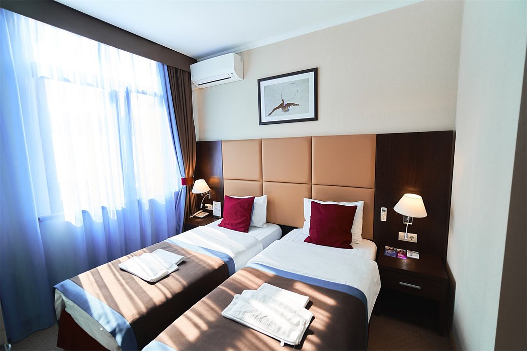 телевизор, спутниковое телевидение, интерактивное телевидение, Wi-Fi, телефон, светильник, фен, весы, будильник, электронные замки, кофемашина, утюг, душевая кабина, санузел, халаты, банные полотенца, пляжные полотенца, тапочки, гигиенические средства, косметические средства, балкон, балкон с красивым видом, две односпальные или большая двуспальная кровать, гипоаллергенное белье, гладильная доска, ортопедический матрас, тумбы, стулья, шкаф для одежды, вешалки, письменный стол, багажная тумба, зеркало, звуконепроницаемые стены и окна, письменные принадлежности, чайный набор, набор посуды, обслуживание номеров, информационная карта, меню, сейф, чайник, унитаз, раковина, косметическое зеркало, ковровое покрытие, душ, вид на город, вид во двор, стаканы, стол, туалет, сплит-система, мини-холодильник, номер для некурящих, онлайн-регистрация до заезда, гигиенический душ, фумигатор, уборка номера, набор для приготовления чая и кофе, вешалки-плечики, бутилированная вода, мыло, затемняющая штора, прачечная (за дополнительную плату), еда на вынос (за дополнительную плату), можно с питомцамиВ гостиничном номере