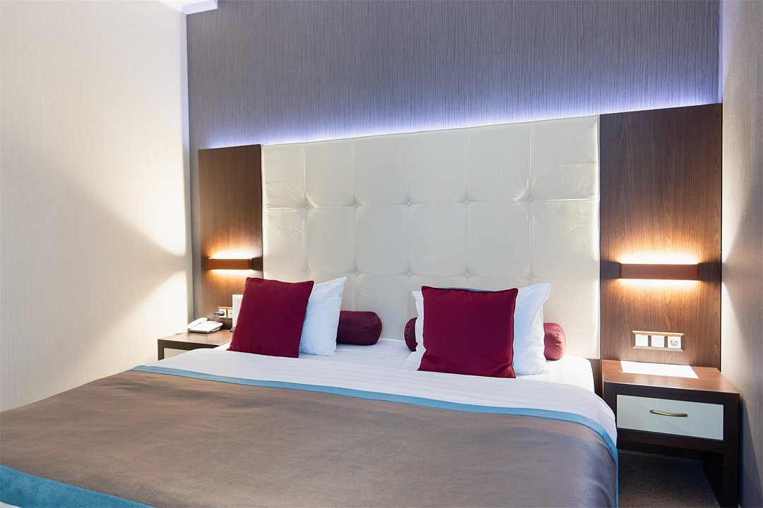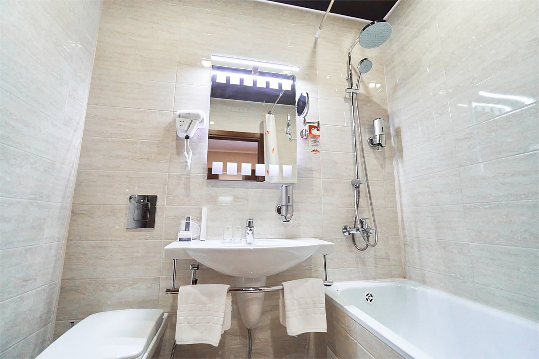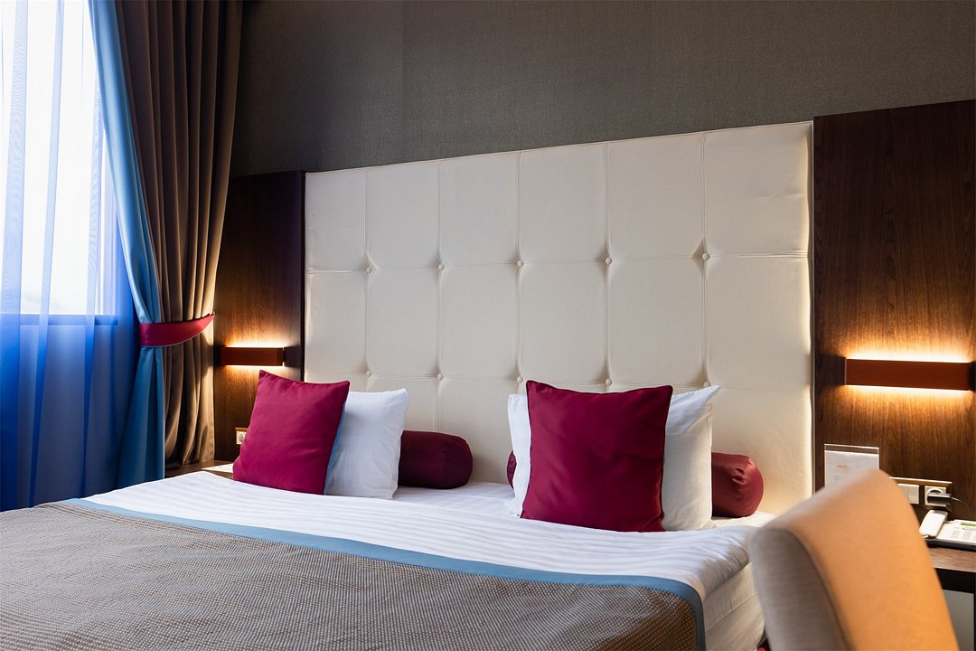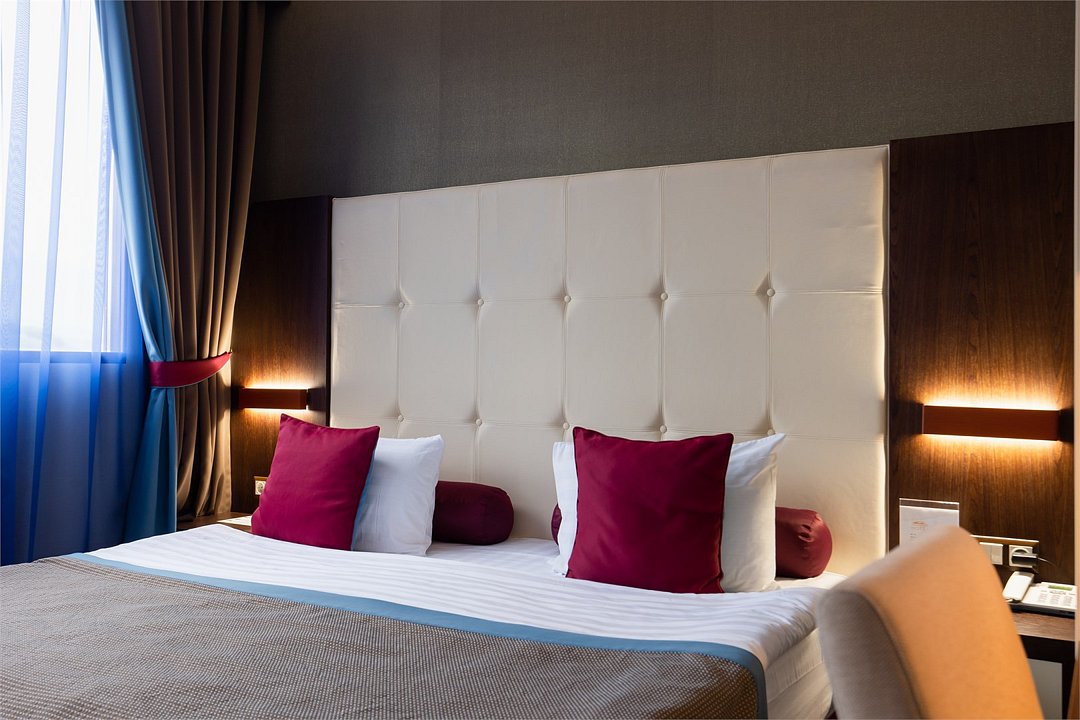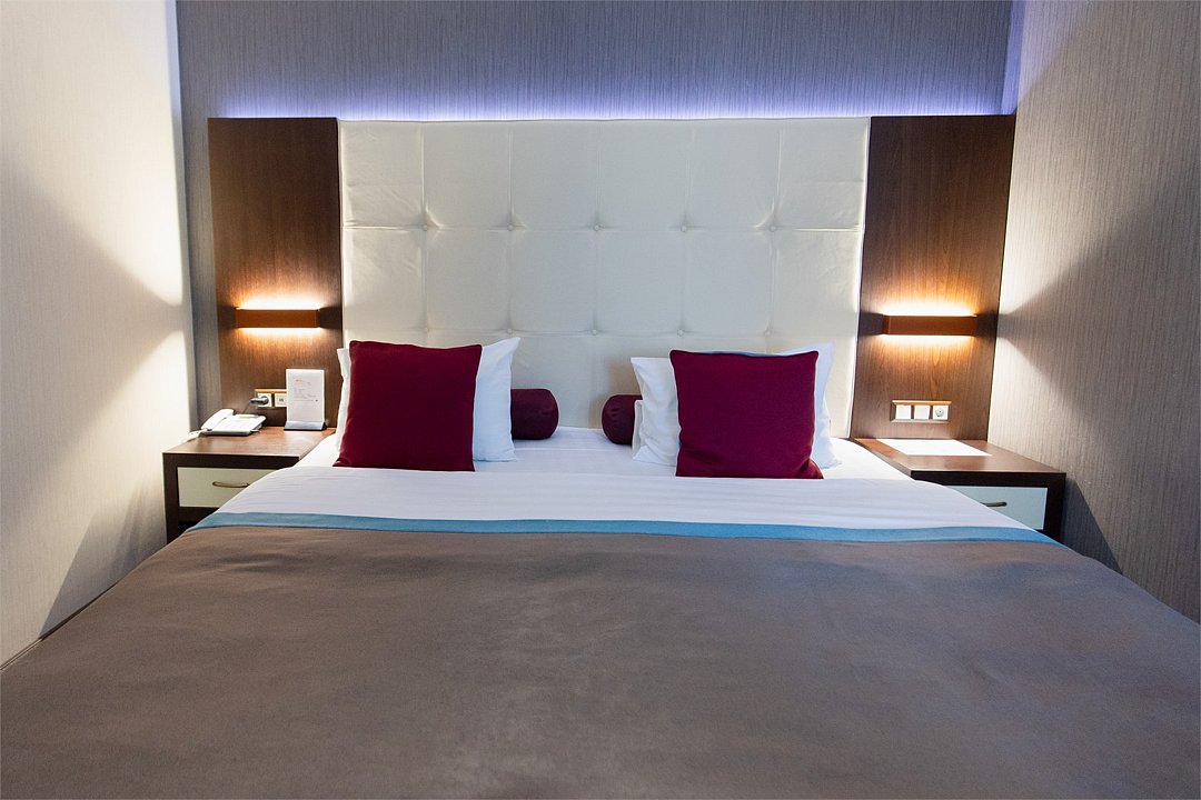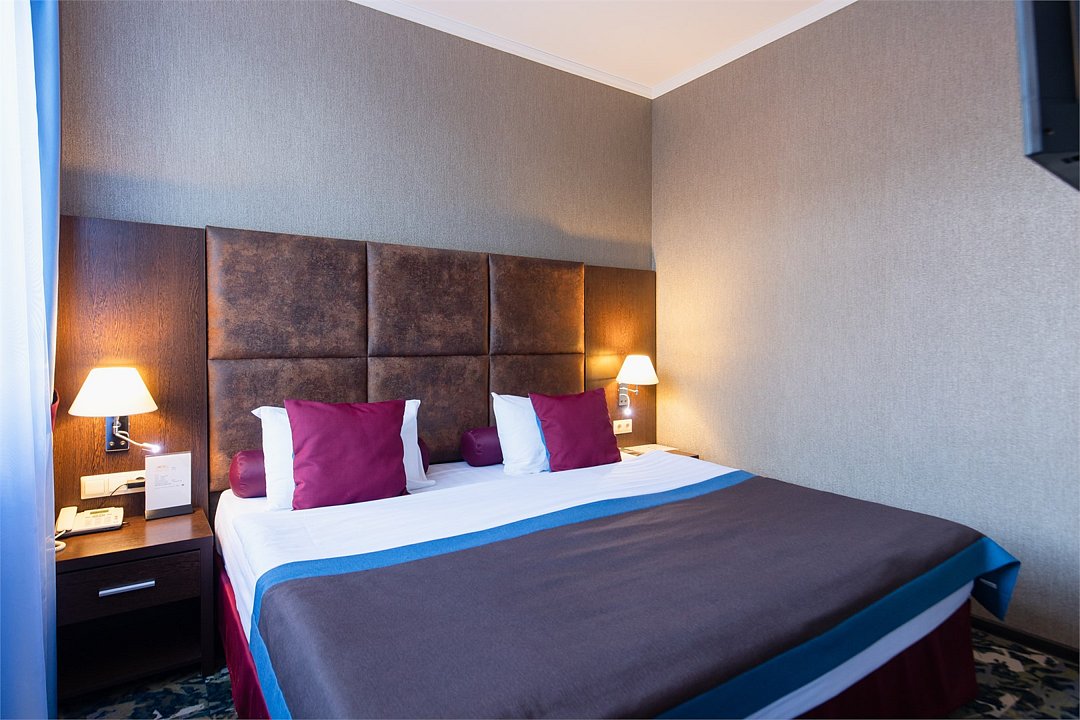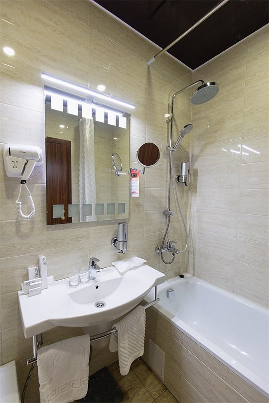 телевизор, спутниковое телевидение, интерактивное телевидение, Wi-Fi, телефон, светильник, фен, весы, будильник, электронные замки, кофемашина, утюг, душевая кабина, санузел, халаты, банные полотенца, пляжные полотенца, тапочки, гигиенические средства, косметические средства, балкон, балкон с красивым видом, две односпальные или большая двуспальная кровать, гипоаллергенное белье, гладильная доска, ортопедический матрас, тумбы, стулья, шкаф для одежды, вешалки, письменный стол, багажная тумба, зеркало, звуконепроницаемые стены и окна, письменные принадлежности, чайный набор, набор посуды, обслуживание номеров, информационная карта, меню, сейф, чайник, унитаз, раковина, косметическое зеркало, ковровое покрытие, душ, вид на город, вид во двор, стаканы, стол, туалет, сплит-система, мини-холодильник, номер для некурящих, онлайн-регистрация до заезда, гигиенический душ, фумигатор, уборка номера, набор для приготовления чая и кофе, вешалки-плечики, бутилированная вода, мыло, затемняющая штора, прачечная (за дополнительную плату), еда на вынос (за дополнительную плату), можно с питомцамиВ гостиничном номере