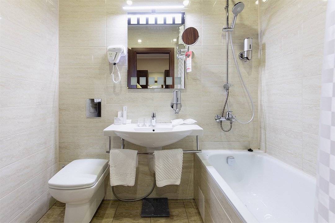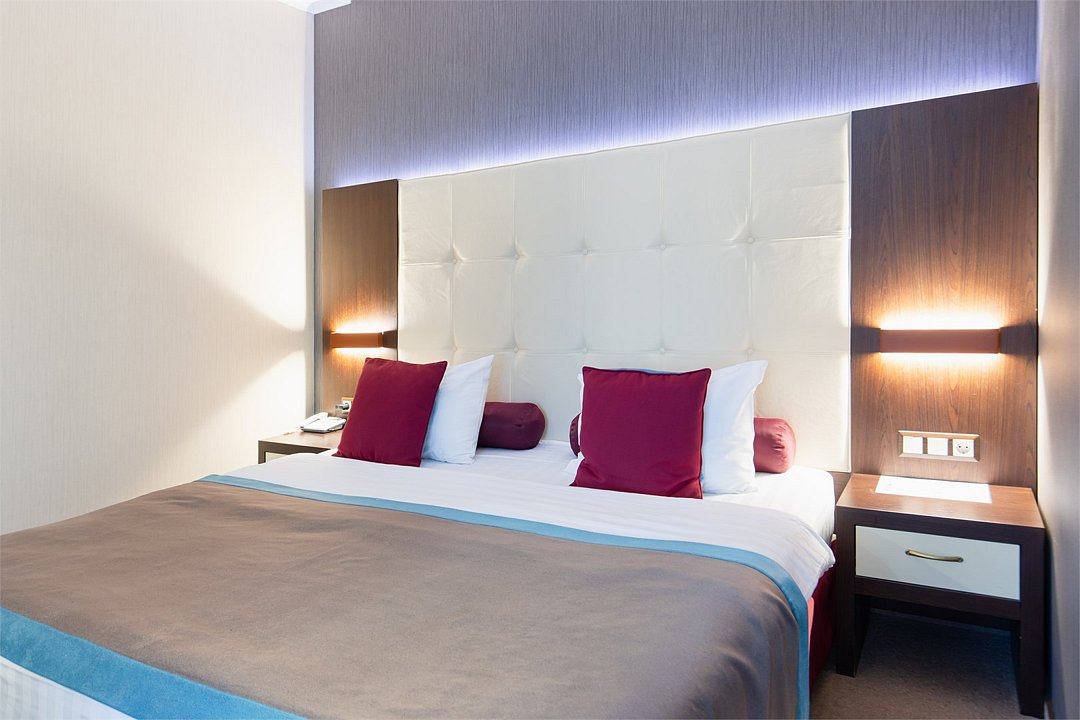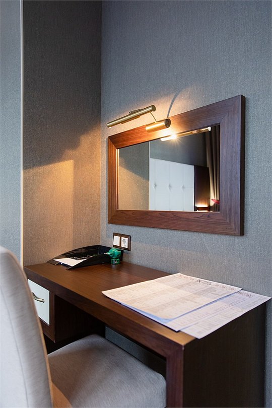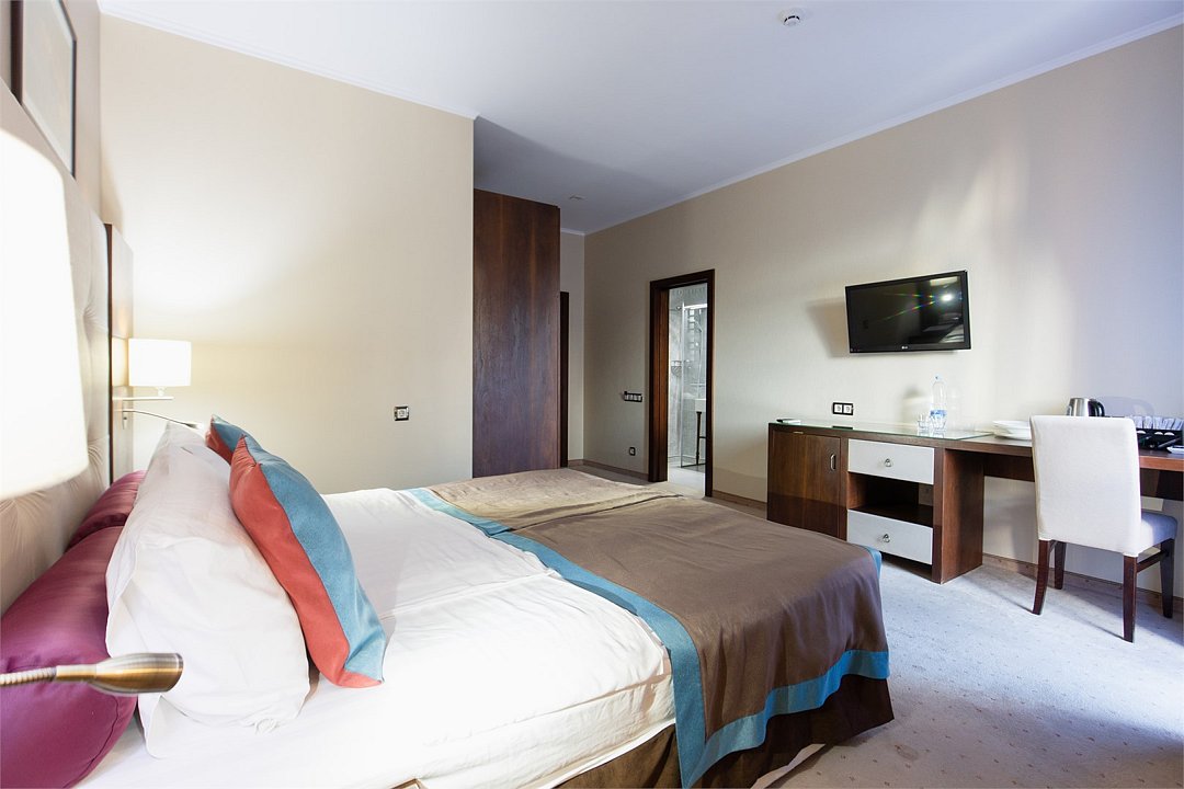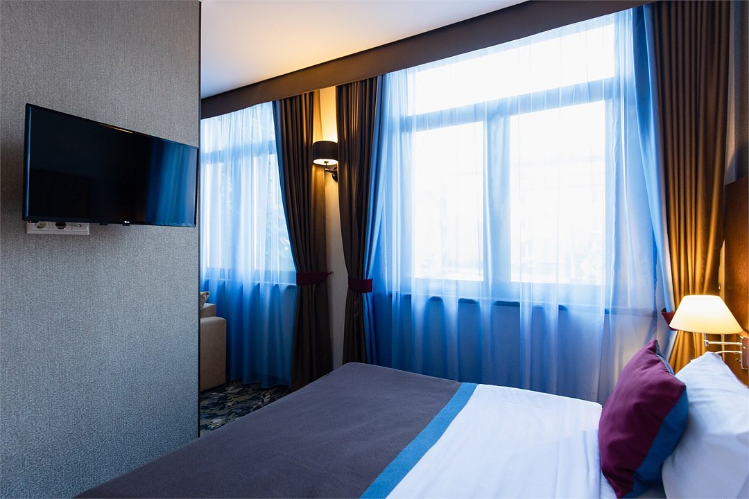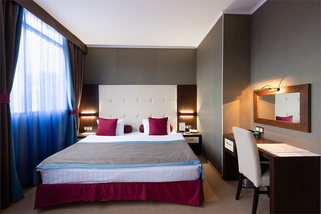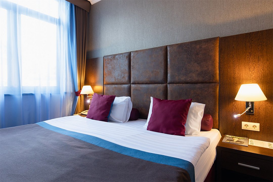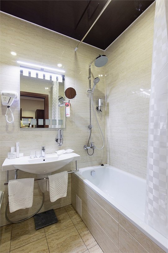 телевизор, спутниковое телевидение, интерактивное телевидение, Wi-Fi, телефон, светильник, фен, весы, будильник, электронные замки, кофемашина, утюг, душевая кабина, санузел, халаты, банные полотенца, пляжные полотенца, тапочки, гигиенические средства, косметические средства, балкон, балкон с красивым видом, две односпальные или большая двуспальная кровать, гипоаллергенное белье, гладильная доска, ортопедический матрас, тумбы, стулья, шкаф для одежды, вешалки, письменный стол, багажная тумба, зеркало, звуконепроницаемые стены и окна, письменные принадлежности, чайный набор, набор посуды, обслуживание номеров, информационная карта, меню, сейф, чайник, унитаз, раковина, косметическое зеркало, ковровое покрытие, душ, вид на город, вид во двор, стаканы, стол, туалет, сплит-система, мини-холодильник, номер для некурящих, онлайн-регистрация до заезда, гигиенический душ, фумигатор, уборка номера, набор для приготовления чая и кофе, вешалки-плечики, бутилированная вода, мыло, затемняющая штора, прачечная (за дополнительную плату), еда на вынос (за дополнительную плату), можно с питомцамиВ гостиничном номере