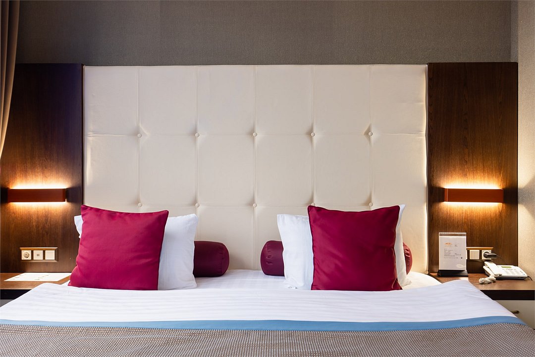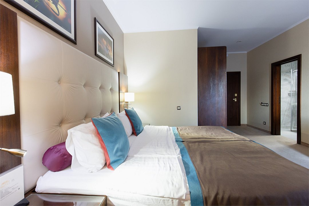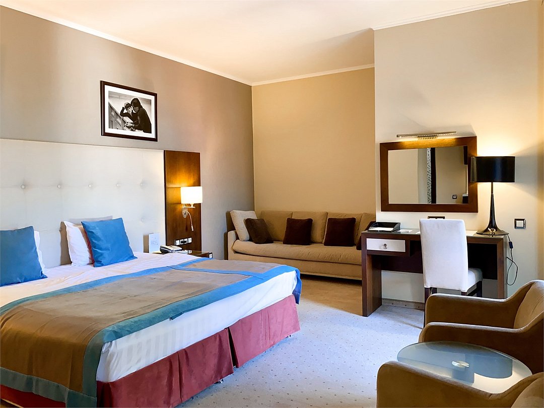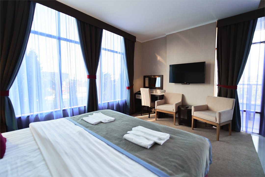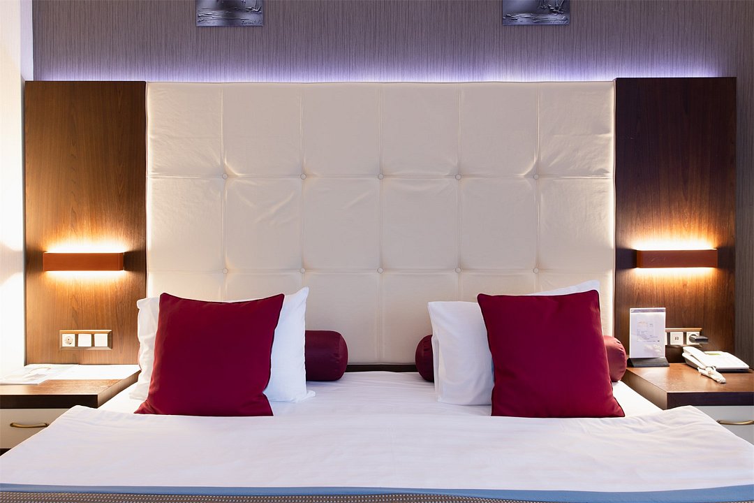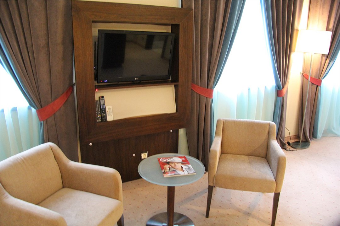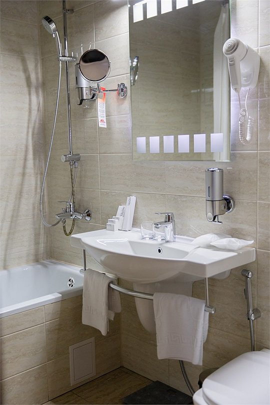 телевизор, спутниковое телевидение, интерактивное телевидение, Wi-Fi, телефон, светильник, фен, весы, будильник, электронные замки, кофемашина, утюг, душевая кабина, санузел, халаты, банные полотенца, пляжные полотенца, тапочки, гигиенические средства, косметические средства, балкон, балкон с красивым видом, две односпальные или большая двуспальная кровать, гипоаллергенное белье, гладильная доска, ортопедический матрас, тумбы, стулья, шкаф для одежды, вешалки, письменный стол, багажная тумба, зеркало, звуконепроницаемые стены и окна, письменные принадлежности, чайный набор, набор посуды, обслуживание номеров, информационная карта, меню, сейф, чайник, унитаз, раковина, косметическое зеркало, ковровое покрытие, душ, вид на город, вид во двор, стаканы, стол, туалет, сплит-система, мини-холодильник, номер для некурящих, онлайн-регистрация до заезда, гигиенический душ, фумигатор, уборка номера, набор для приготовления чая и кофе, вешалки-плечики, бутилированная вода, мыло, затемняющая штора, прачечная (за дополнительную плату), еда на вынос (за дополнительную плату), можно с питомцамиВ гостиничном номере