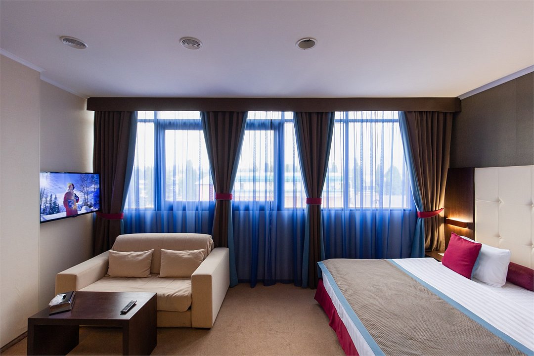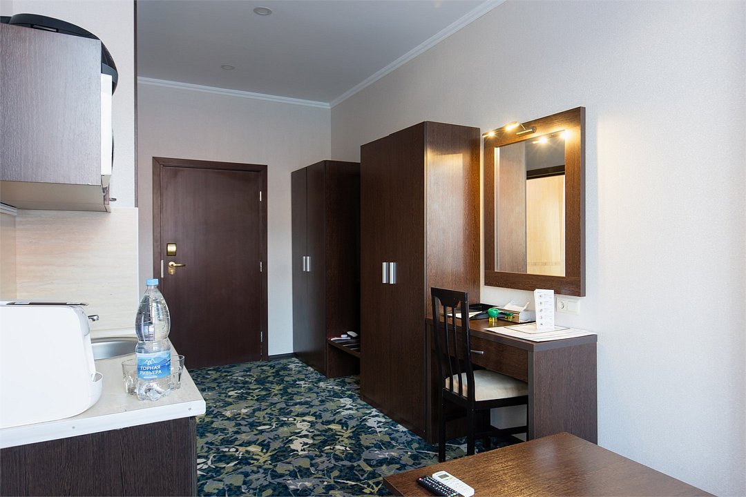 телевизор, спутниковое телевидение, интерактивное телевидение, Wi-Fi, телефон, светильник, настольные лампы, фен, весы, будильник, электронные замки, кофемашина, микроволновая печь, утюг, душевая кабина, ванна или душевая кабина, санузел, халаты, банные полотенца, пляжные полотенца, тапочки, гигиенические средства, кровать «King size», две односпальные или большая двуспальная кровать, гипоаллергенное белье, гладильная доска, ортопедический матрас, кресла, тумбы, стулья, шкаф для одежды, вешалки, журнальный столик, письменный стол, багажная тумба, зеркало, звуконепроницаемые стены и окна, письменные принадлежности, чайный набор, набор посуды, обслуживание номеров, информационная карта, меню, сейф, чайник, унитаз, раковина, мягкая мебель, косметическое зеркало, обеденная зона, ковровое покрытие, душ, вид на город, стаканы, столовые приборы, стол, туалет, сплит-система, раскладной диван, мини-холодильник, мини-кухня, кухонный уголок, вид на горы, номер для некурящих, фанкойл, онлайн-регистрация до заезда, гигиенический душ, фитнес-зона, фумигатор, уборка номера, набор для приготовления чая и кофе, услуги прачечной (платно), вешалки-плечики, бутилированная вода, мыло, стульчик для кормления ребенка, затемняющая штора, еда на вынос (за дополнительную плату), онлайн-регистрация, дождевой и ручной душ, можно с питомцамиВ гостиничном номере