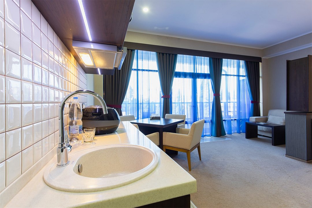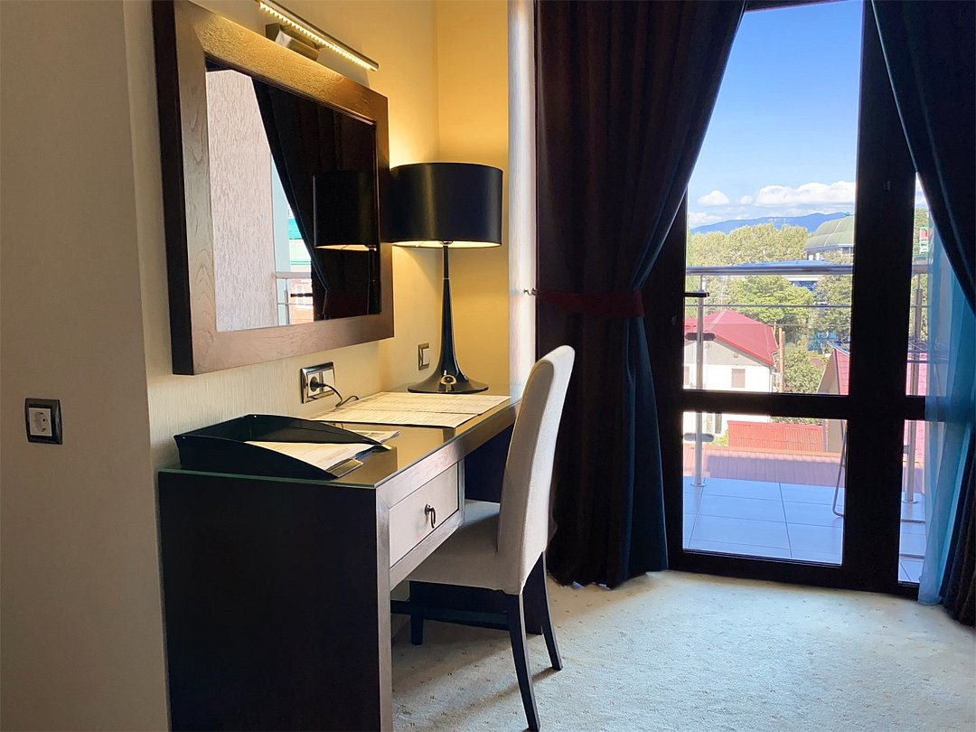 Здесь есть всё, что необходимо! Тишина в номере, внимание горничных и администраторов на ресепшен. Кухня и сервис в кафе-баре (хотя - вполне ресторан!) на достаточно высоком уровне. Бывают "косяки" ... вместо шашлыка из свинины принесли куриный, извинились- улыбнулись.... В другой раз попросили подождать чуть больше обычного, потому как (как сказали) сожгли при жарке часть заказанных хинкали... Мелочи. С каждым бывает. Но эти мелочи быстро компенсировались качеством поданных блюд. Завтраки в номер - в течении 20 минут от заказа.