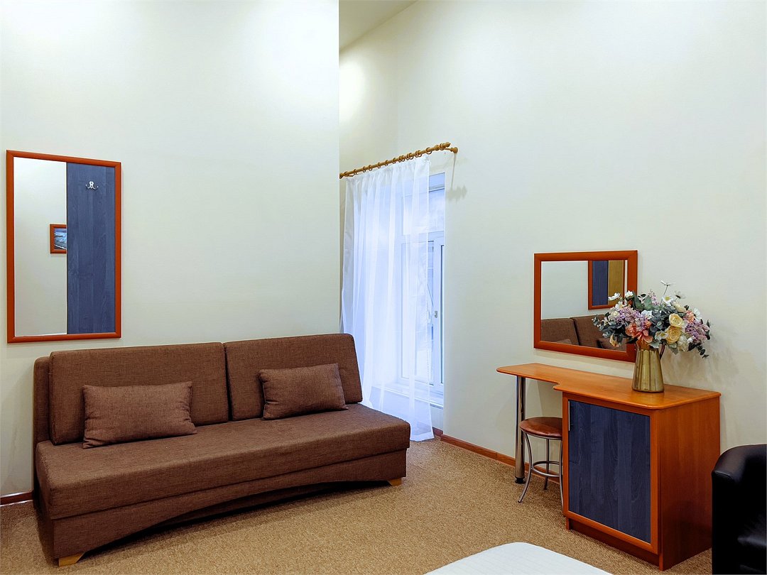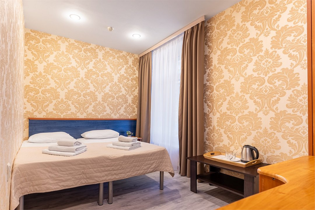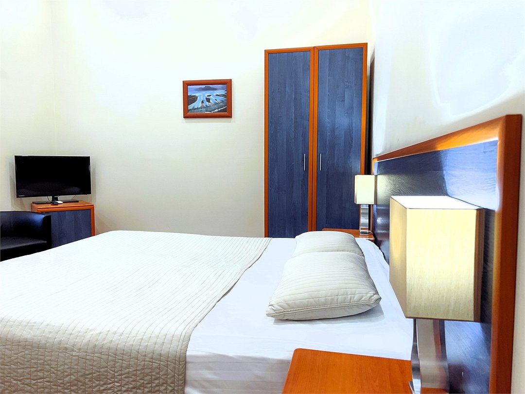 Отель «Фрегат - 1» готов предложить гостям однокомнатный номер, который подходит для семьи или компании до четырех человек. Площадь номера составляет от 18 - 22 кв. м, что обеспечивает свободное пространство и уютную обстановку. Дети до 5 лет могут проживать в номере бесплатно. Стены номера оформлены в светлых тонах, что создает атмосферу уюта. В номере имеется все необходимое для удобного время препровождения, включая удобную мебель, кондиционер, телевизор, Wi-Fi, фен, полотенца, собственную ванную комнату.Услуги и удобства